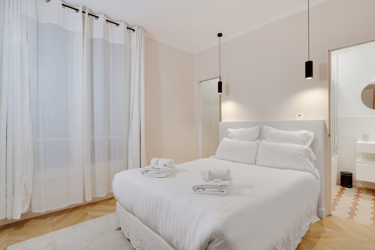 Accommodating up to four guests, the apartment features two bedrooms and one bathroom. The second bedroom is best suited for a single person. As a centrally located property, some street noise may be heard. The building offers a communal entrance and provides 24/7 guest support and concierge services. Self-check-in is available for your convenience. For more properties, browse our luxury villa rentals in France.