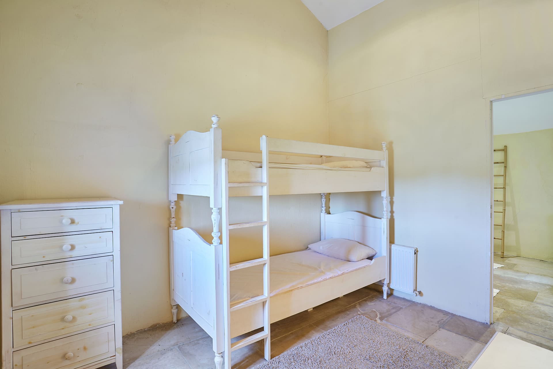 Step into a realm of refined interiors where every detail speaks of luxury. The villa features five spacious bedrooms, four of which come with en-suite bathrooms ensuring privacy and comfort. The living spaces are adorned with elegant furnishings, seamlessly blending modern amenities with classic Provençal charm. A fully equipped kitchen awaits culinary enthusiasts, while the grand dining area provides the perfect setting for memorable meals. The children’s room, designed with a fun bunk bed setup, is ideal for younger guests, making this property truly family-friendly.