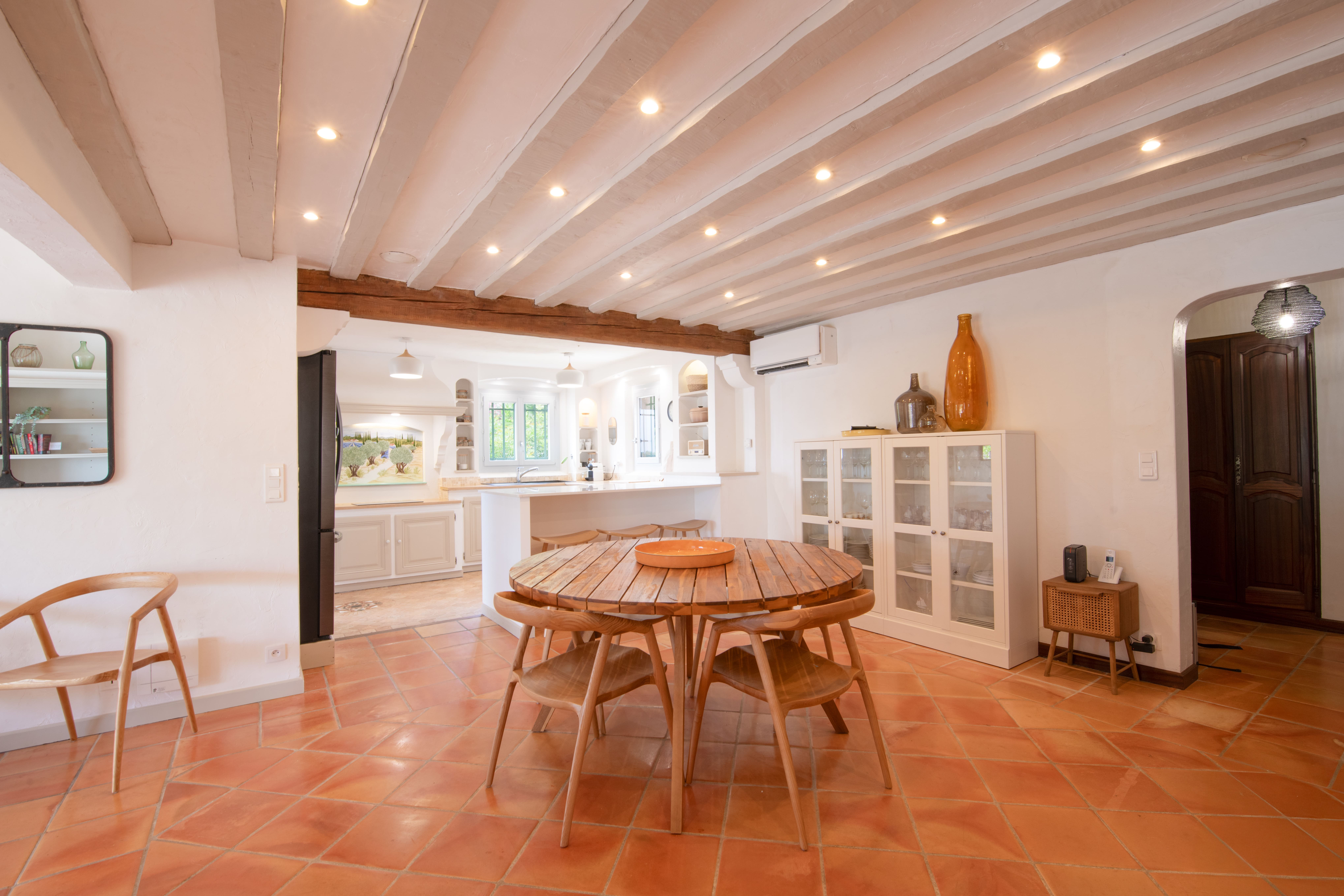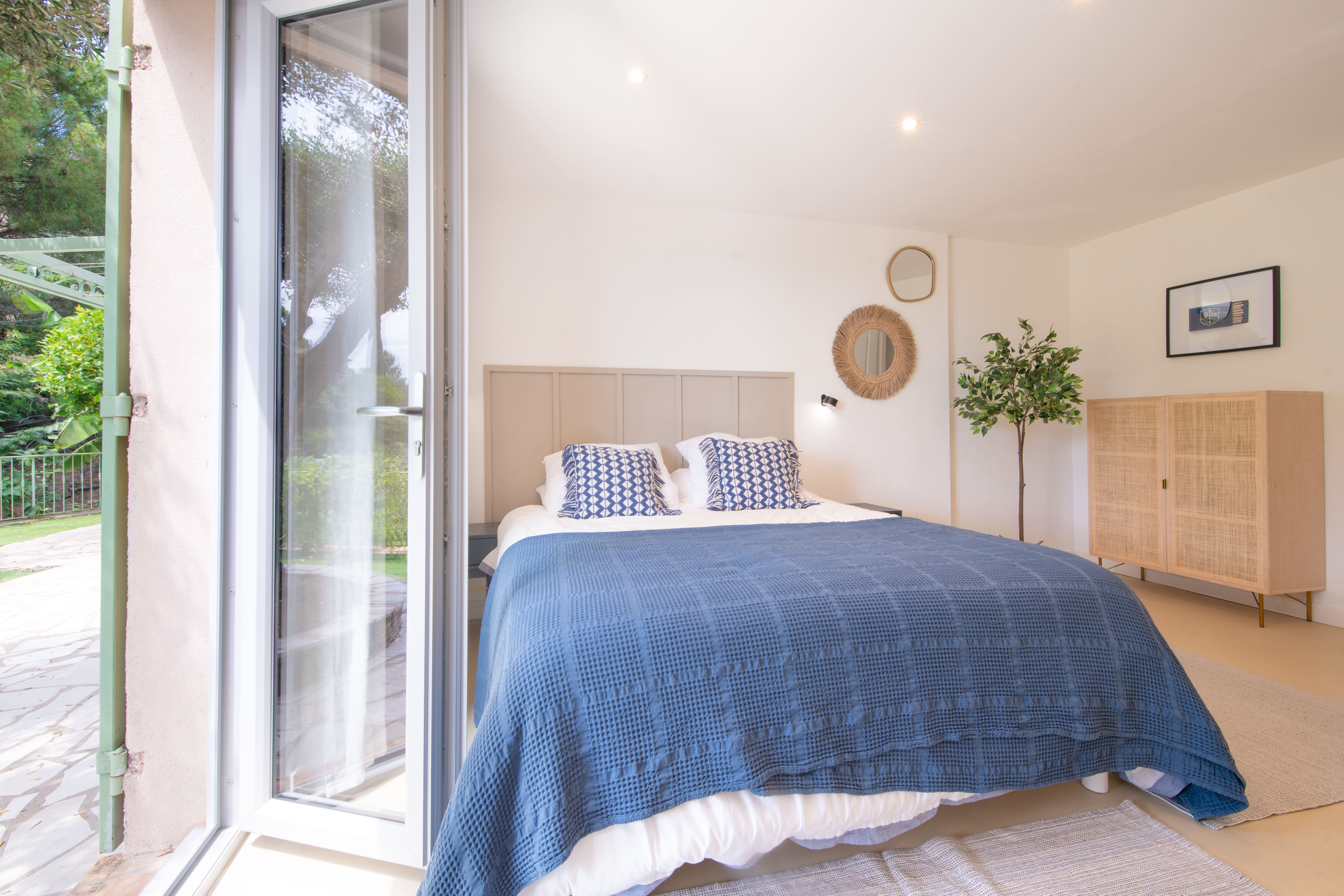 Step outside to the terrace, where the azure sea stretches before you, offering the perfect backdrop for morning coffee or evening apéritifs. The private swimming pool invites refreshing dips under the sun, while the surrounding area provides a tranquil setting for relaxation. With the French Riviera’s beauty at your doorstep, each moment here is a picture-perfect memory.
