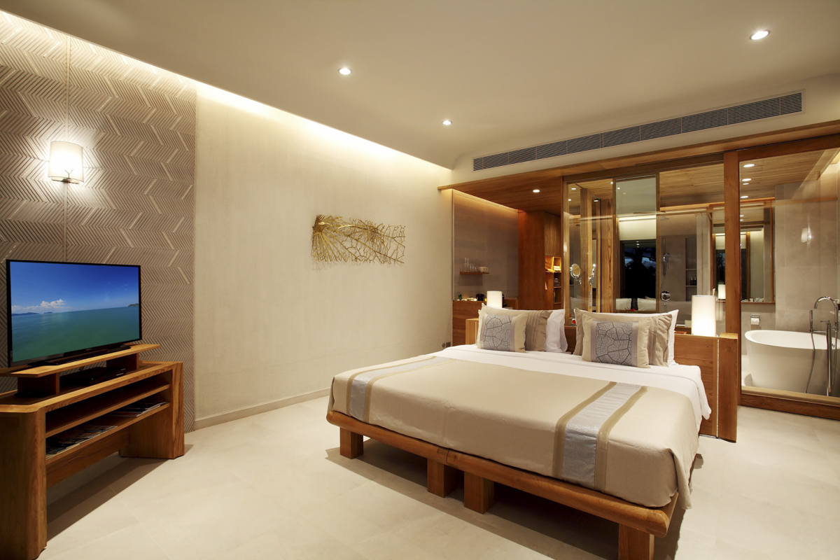 Attached is your incredible ensuite bathroom. An enormous free-standing bathtub is a wonderful centrepiece here, providing the perfect private space for settling in, alone or together, for an hour or two of total peace and rejuvenation as you soak in the scintillatingly scented Sri Panwa bath milk.