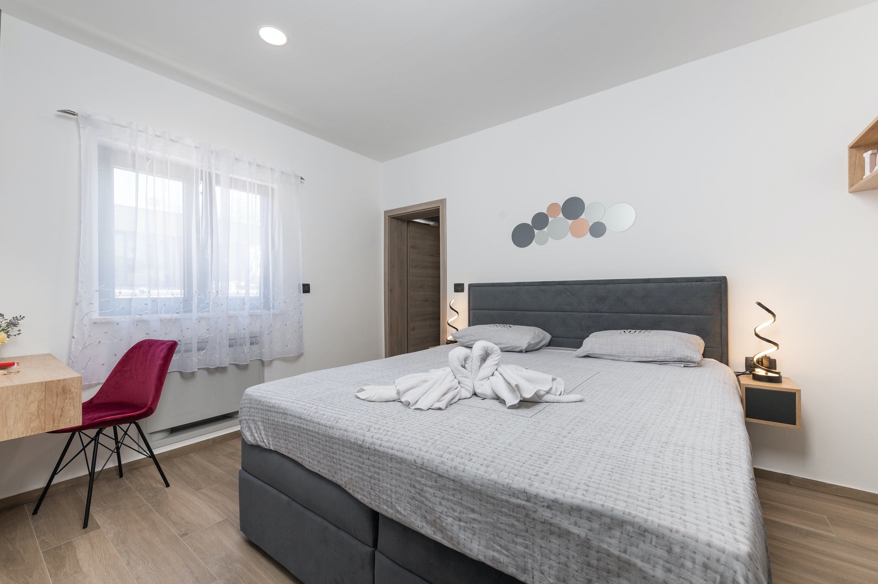 The villa accommodates up to four guests across two bedrooms and two bathrooms. Private parking is available for up to three cars, and up to two small dogs are welcome, adding to the family-friendly appeal. For those traveling with infants, a cot is available upon request. Browse our luxury villa rentals in Croatia for more properties.