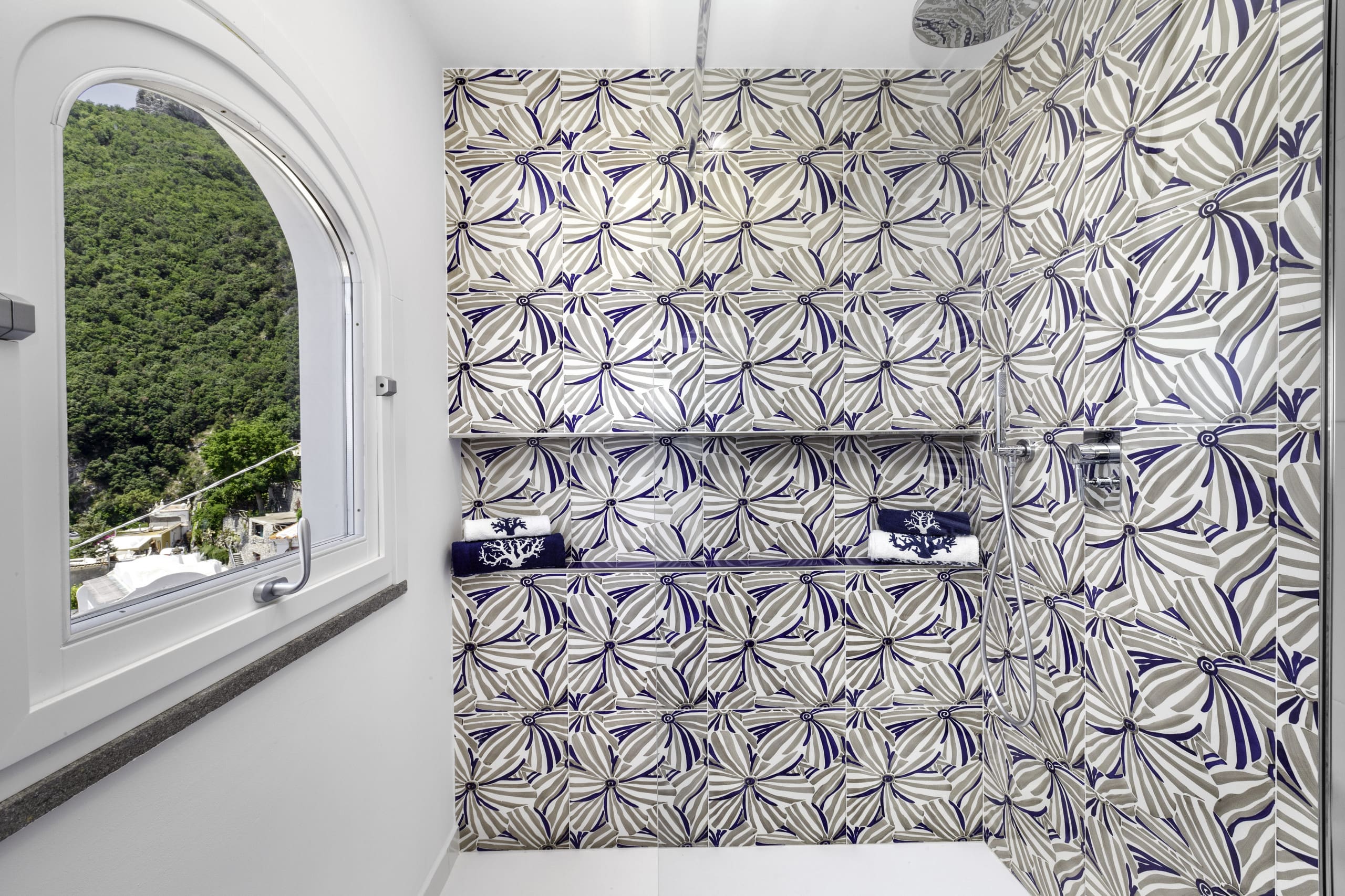 The interior of this luxury penthouse in Positano is a harmonious blend of style and comfort. The open-plan living area is adorned with a soothing blue and white palette, reminiscent of the coastal surroundings. The living space includes a plush sofa bed, perfect for accommodating additional guests, while the dining table serves as a versatile workspace for those mixing business with leisure. The country-style kitchen is fully equipped, providing everything you need to prepare delightful Italian dishes. The spacious bedroom offers a tranquil haven, complete with a comfortable bed and elegant decor, ensuring restful nights.