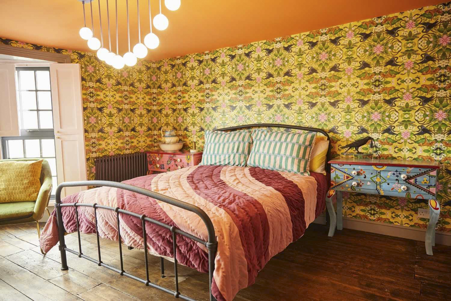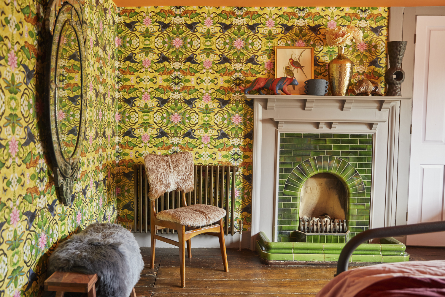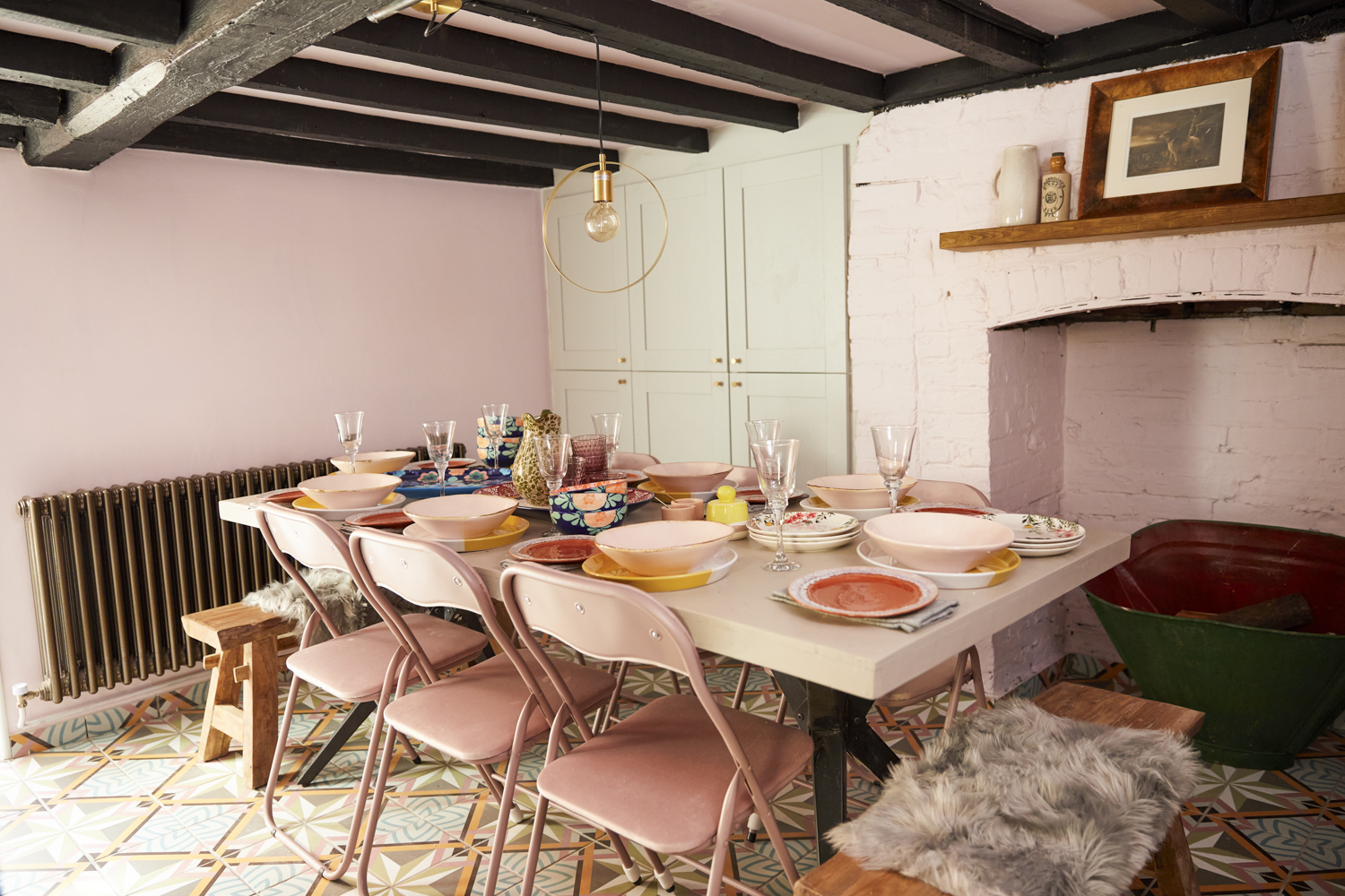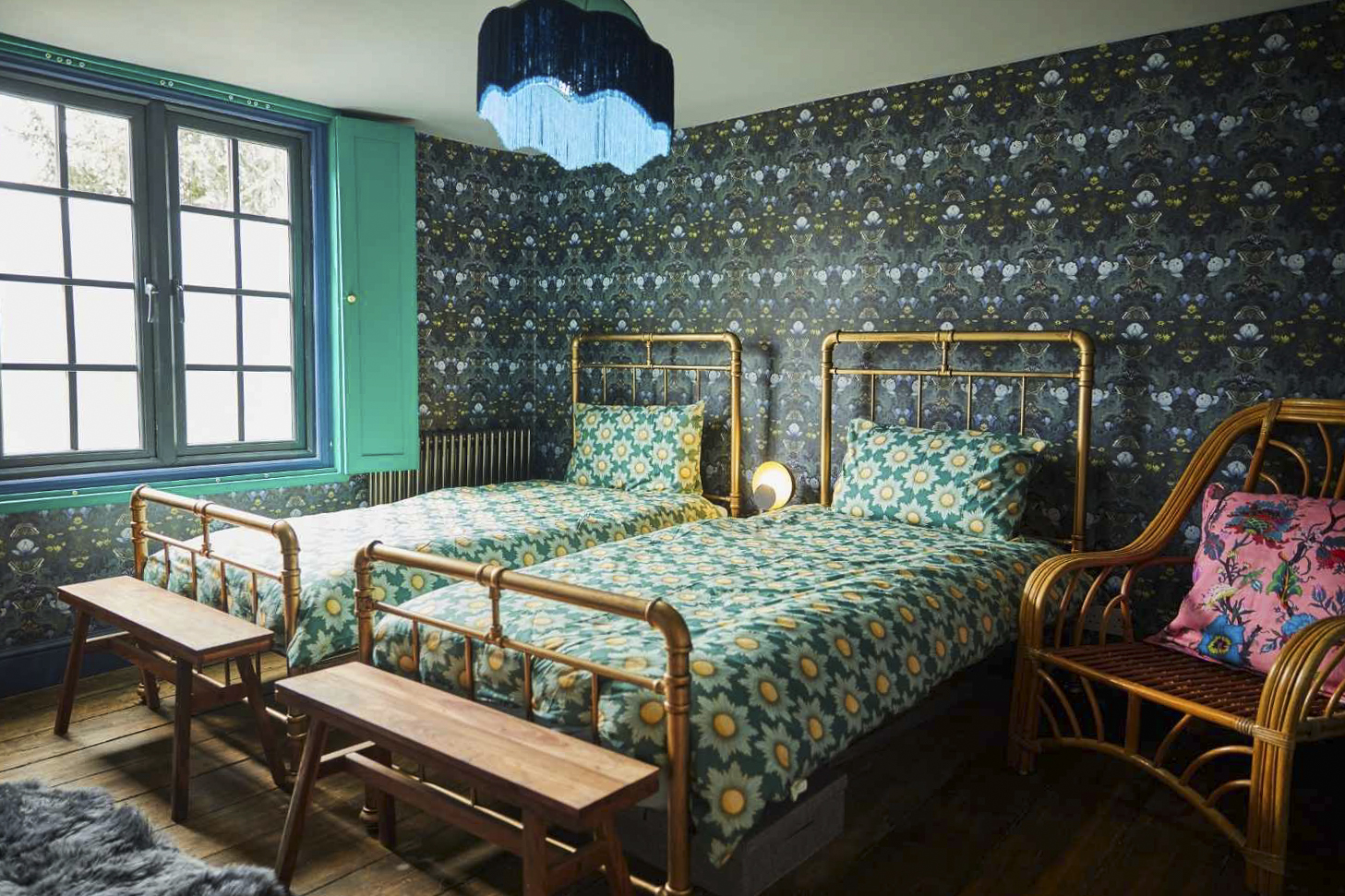 Ground Floor – Sitting room, with beautiful bay window, and a selection of comfortable, colourful velvet sofas. There is no TV (there is a TV License, should you wish to stream a movie), but the space is amply supplied with games from giant checkers to poker and chess.