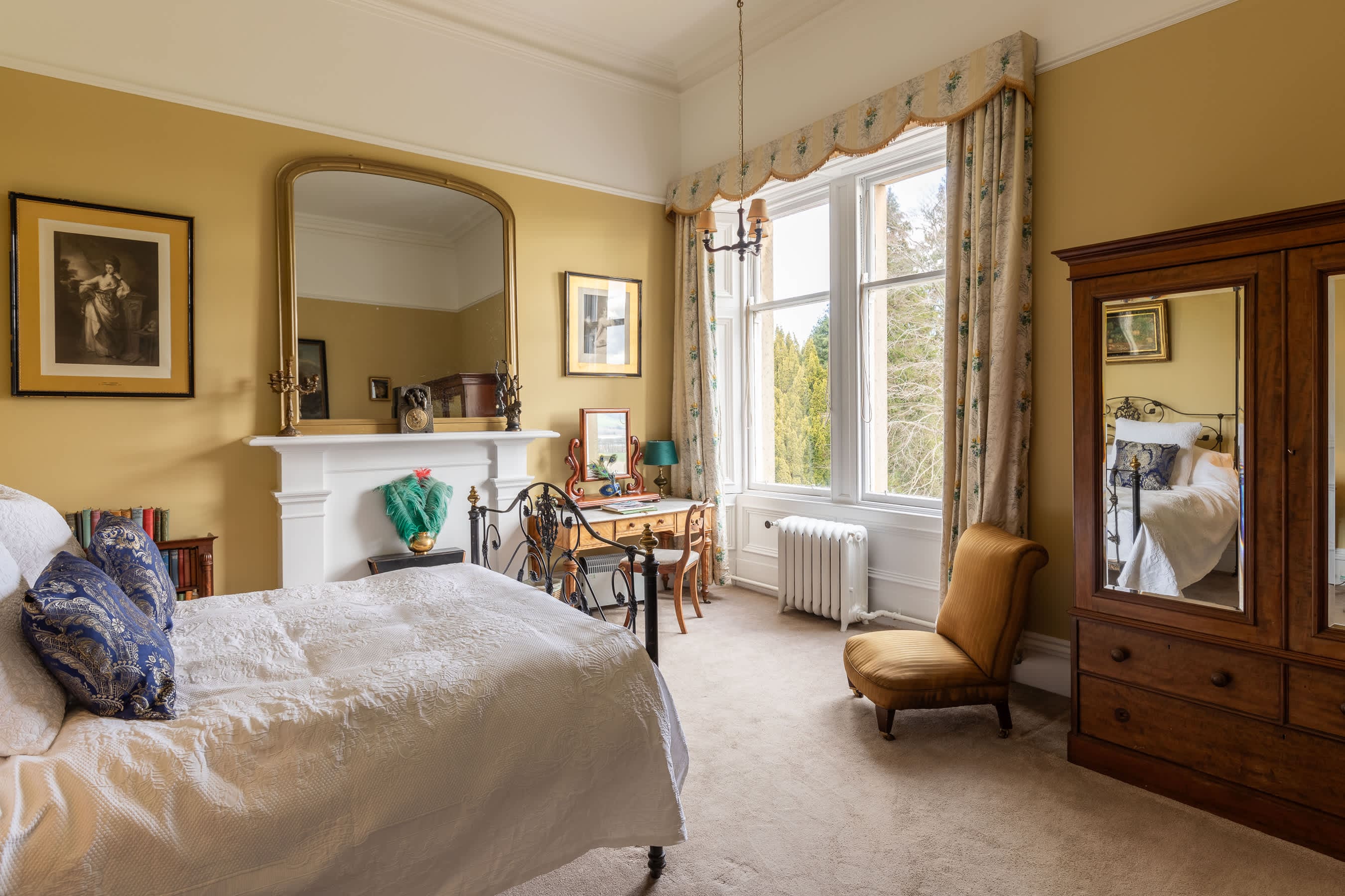 Step inside to discover an interior that marries historic charm with contemporary comfort. The spacious dining hall, capable of seating thirty-two, is perfect for grand gatherings, complete with a piano for musical evenings. The grand staircase, a striking feature, leads to elegantly appointed bedrooms, each offering picturesque views of the River Tay. Unique to this property, one bedroom includes its own private drawing room, providing an exclusive retreat within your stay.