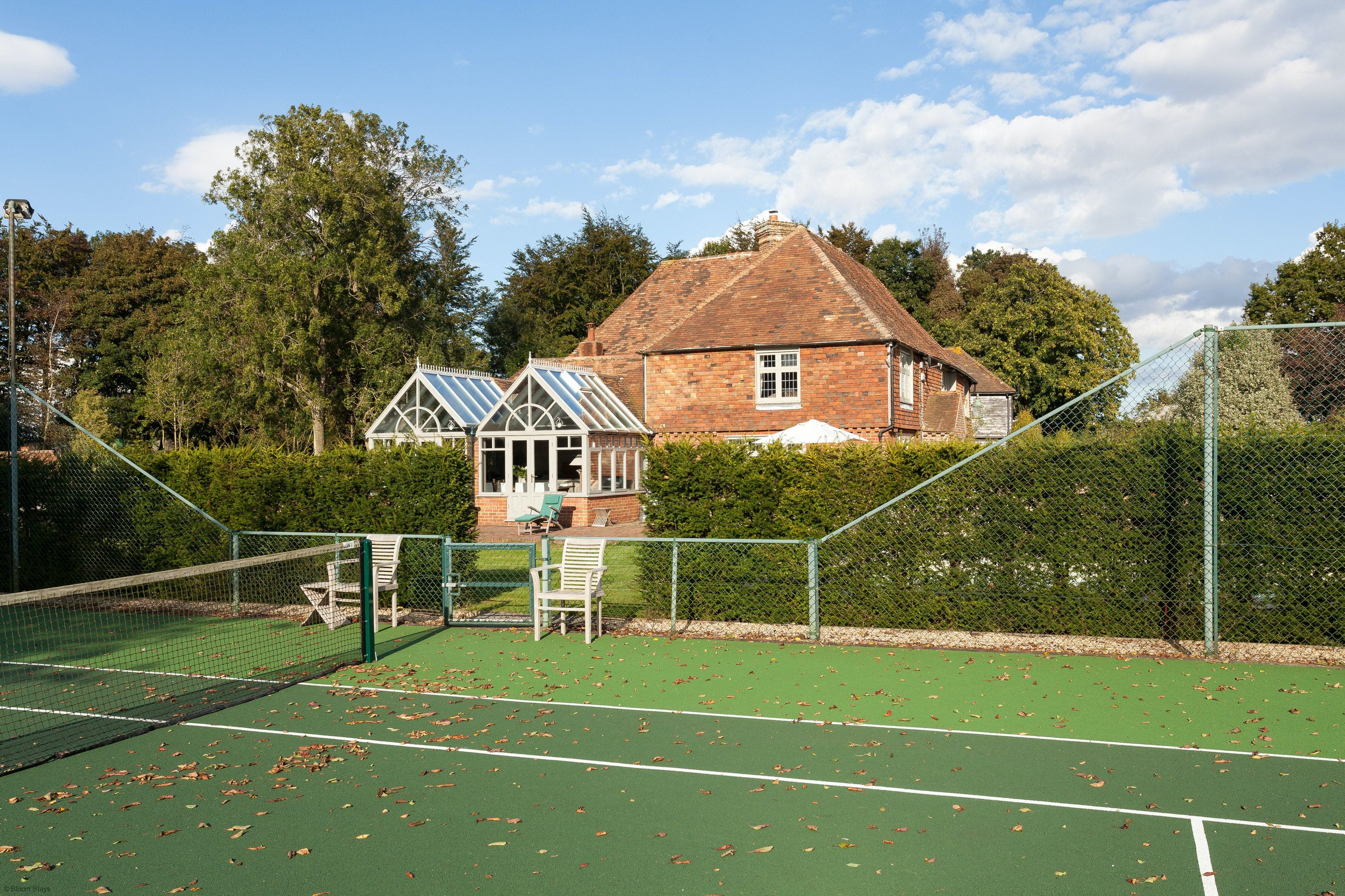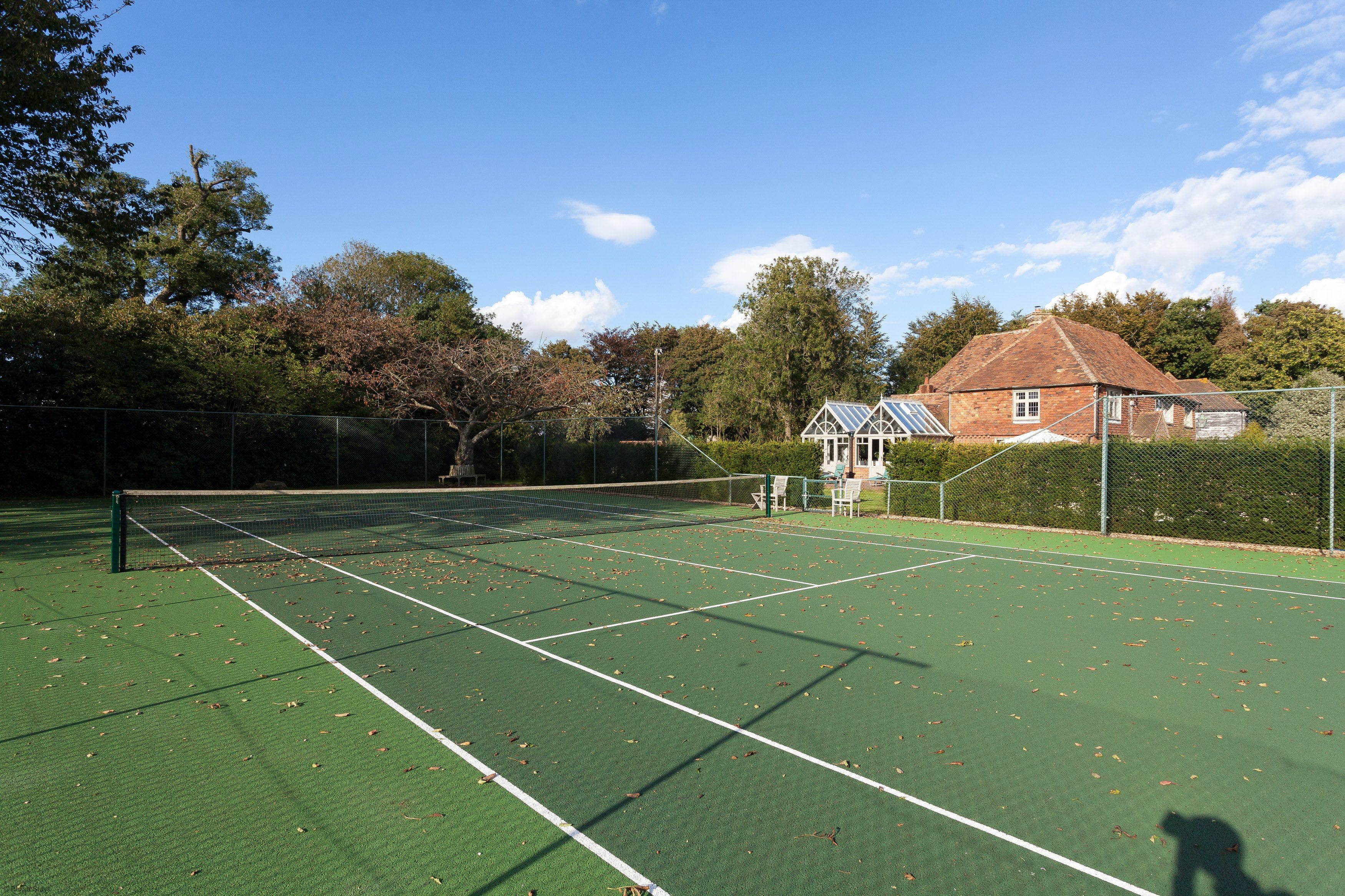 Venture outdoors to enjoy the property’s exceptional amenities. The heated swimming pool, available from May through September, provides a refreshing escape on warm days. Tennis enthusiasts will appreciate the private court, perfect for friendly matches. The picturesque estate offers sweeping views and ample space for leisurely walks, all set against the stunning backdrop of Kent’s natural beauty.