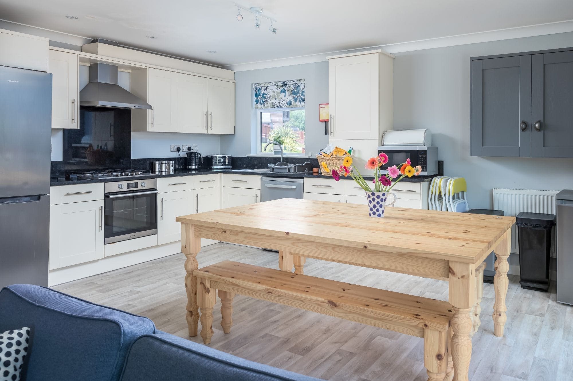 The apartment comfortably accommodates up to 10 guests with four bedrooms and three bathrooms. On-site parking for two cars ensures convenience for those traveling by car. The private entrance provides easy access, while the dining table doubles as a workspace for those needing to catch up on work. Pets and children are welcome, making it a versatile option for families. For more options, browse our luxury villa rentals in United Kingdom.
