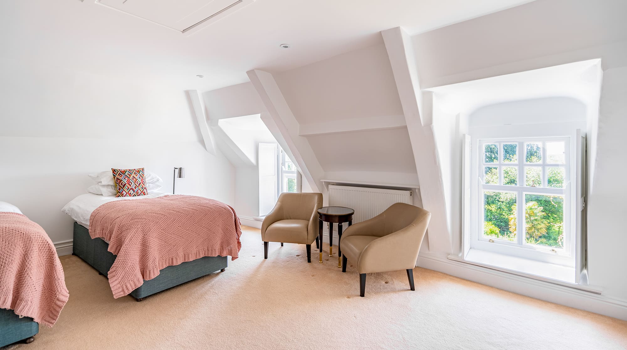 The villa’s outdoor spaces are as impressive as its interiors. Set within two acres of private gardens, guests can enjoy a heated indoor swimming pool powered by green energy, a professional-grade tennis court, and a charming walled garden with a lily pond. The serene outdoor setting is perfect for al fresco dining or simply soaking in the picturesque Welsh countryside.