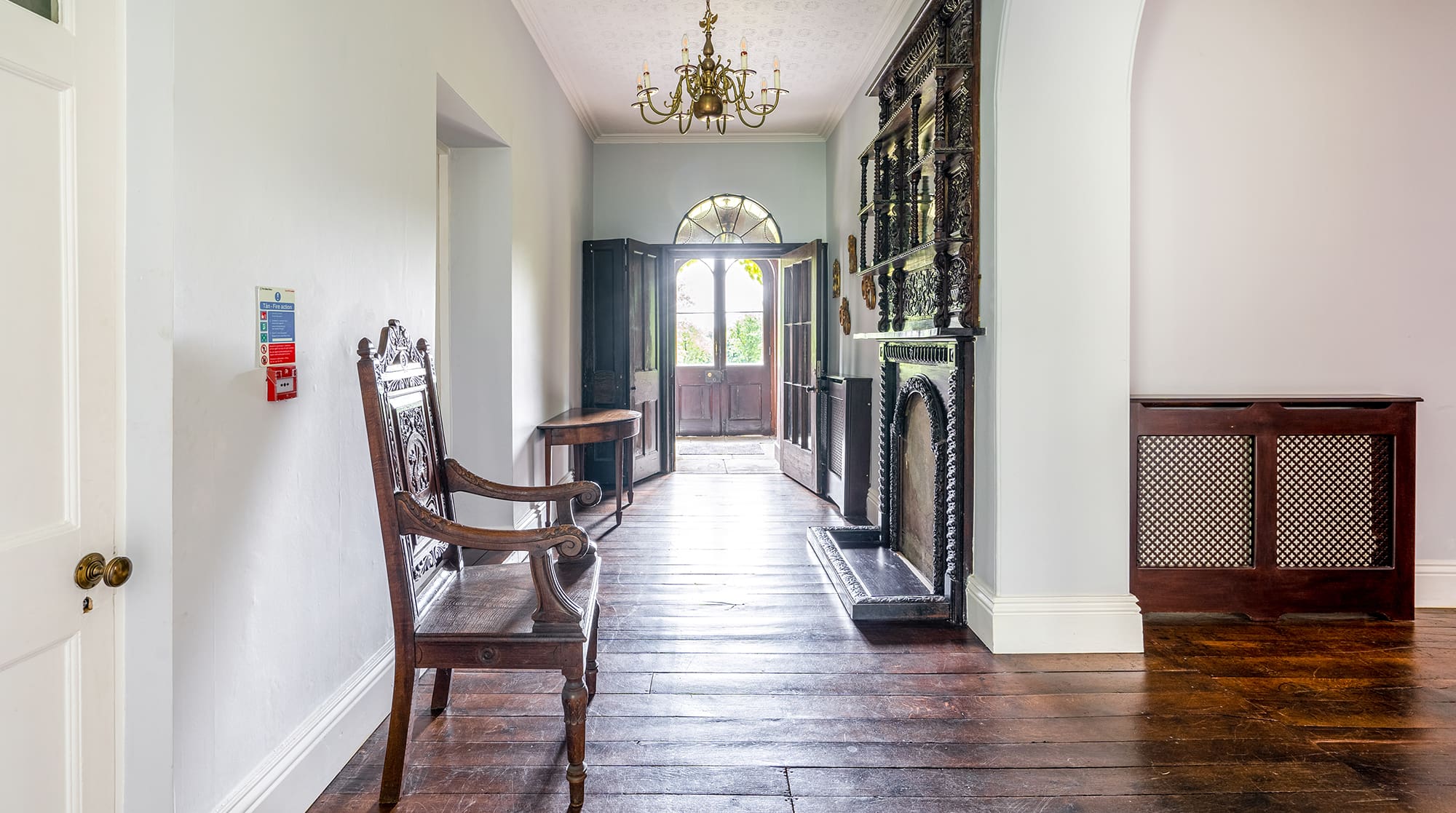 A: The property features a secret door in the drawing room leading to a library, adding to its historic charm.