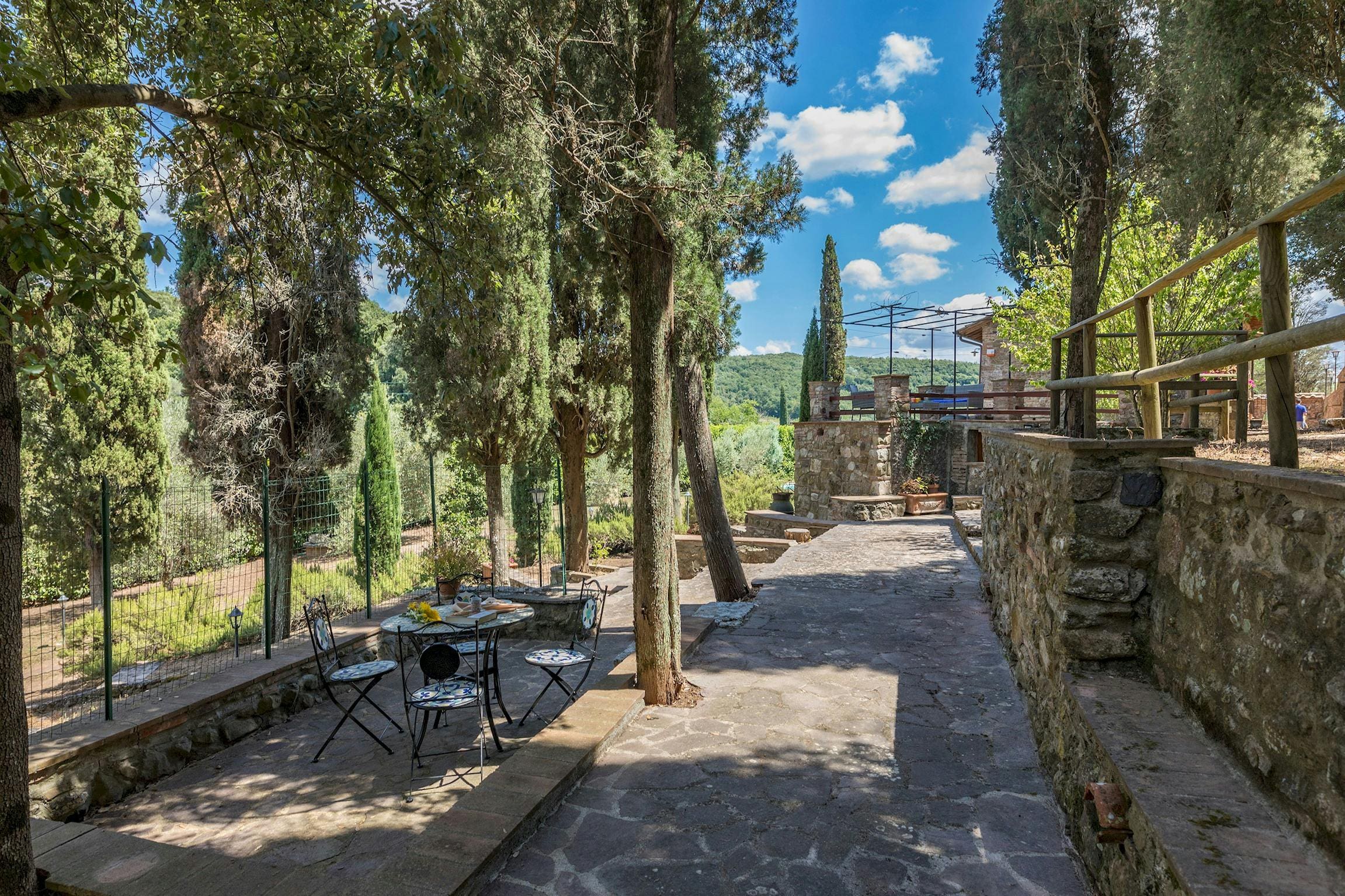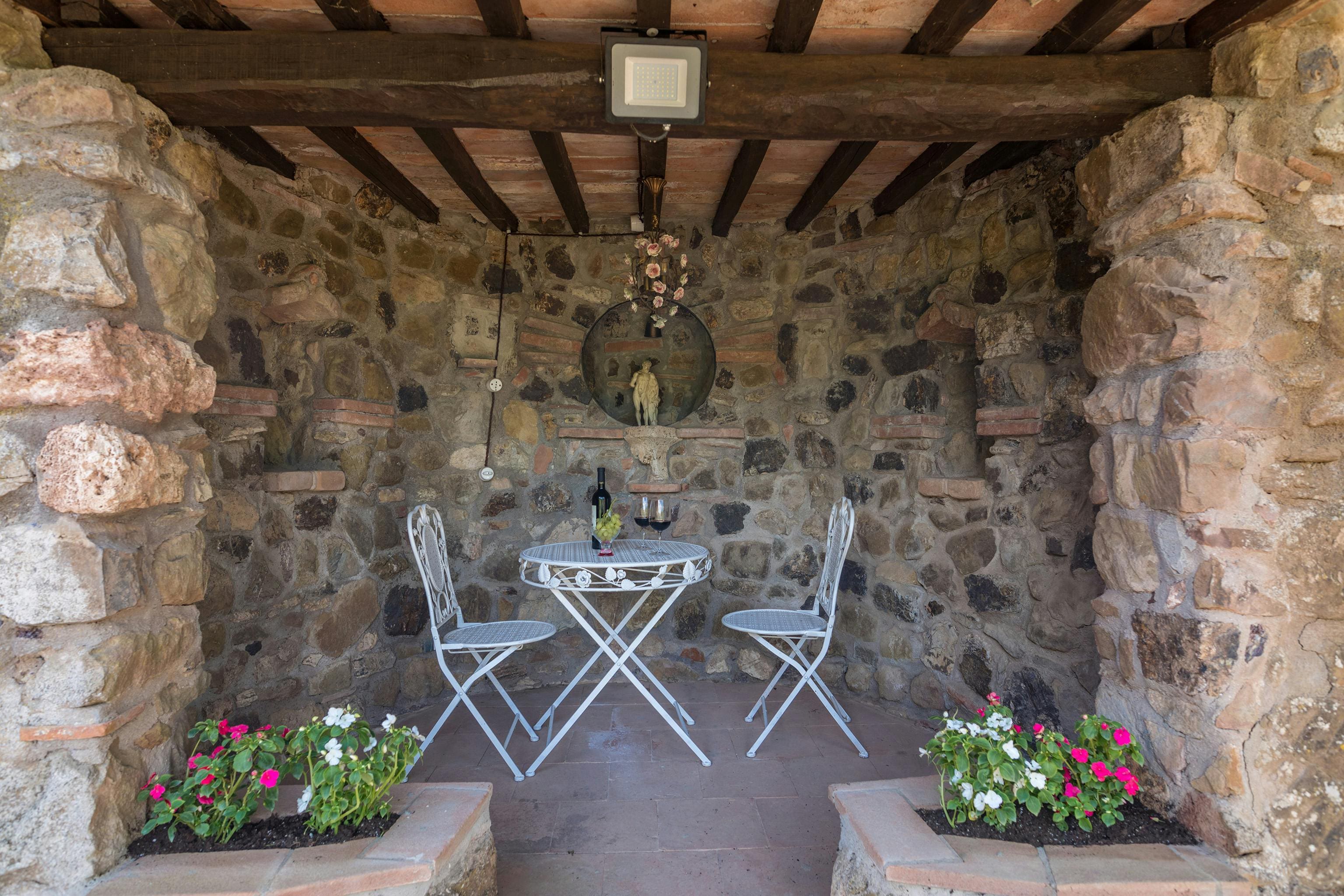 Surrounded by lush vineyards and olive groves, the outdoor spaces are a true highlight of this property. Guests can enjoy the private swimming pool, open from late April to early October, or dine alfresco in the shaded gazebo. The garden, adorned with cypress and olive trees, offers a serene backdrop for relaxation and leisure.