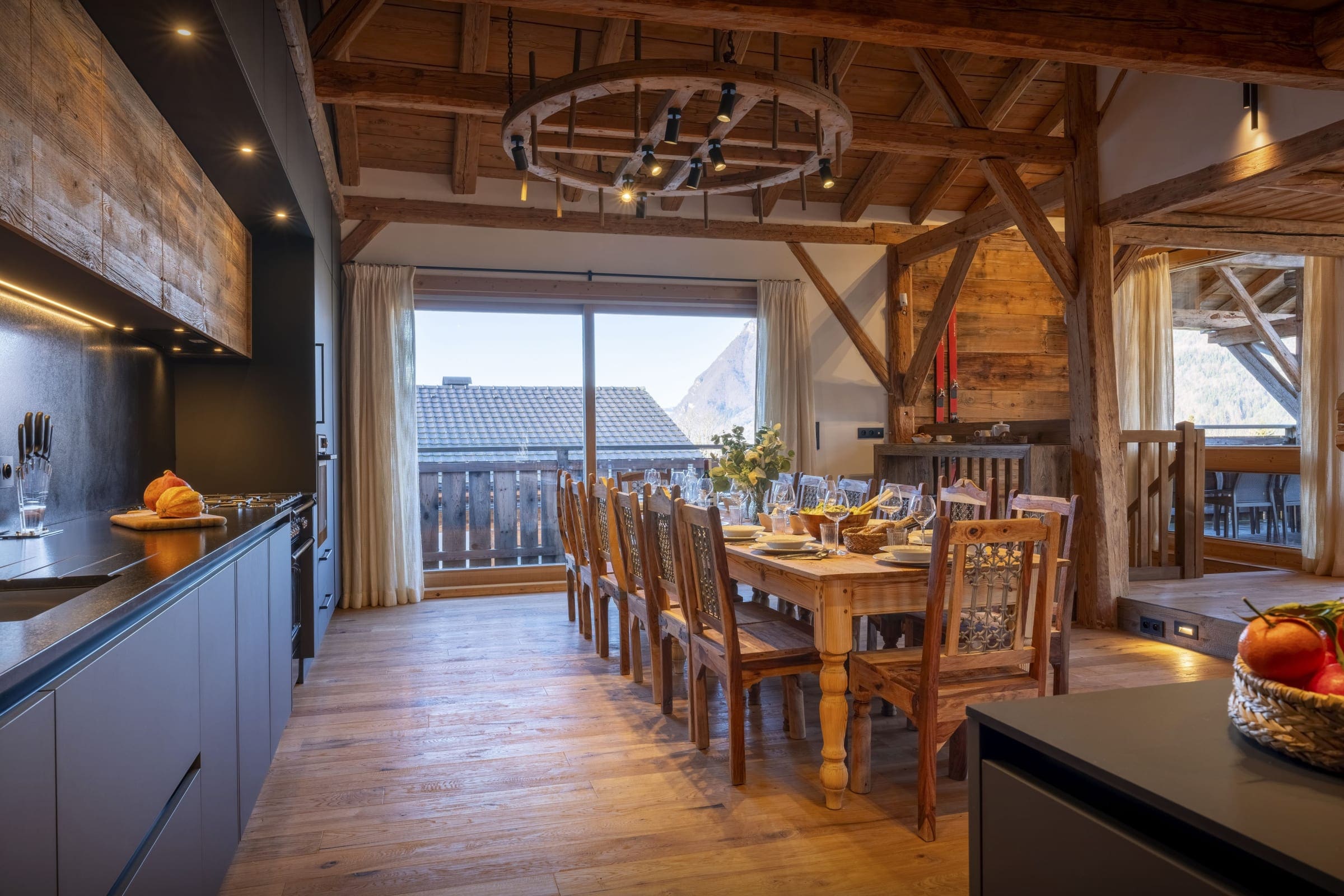 Step inside and be welcomed by the harmonious blend of traditional alpine charm and modern sophistication. The chalet boasts seven elegantly designed bedrooms, each offering picturesque views of the surrounding mountains. With five well-appointed bathrooms, there’s ample space for up to 15 guests to unwind in comfort. The cozy lounge, complete with a warm fireplace, invites you to relax after a day on the slopes, while the cinema and games room provide entertainment for all ages. The kitchen is fully equipped, catering to all your culinary needs.