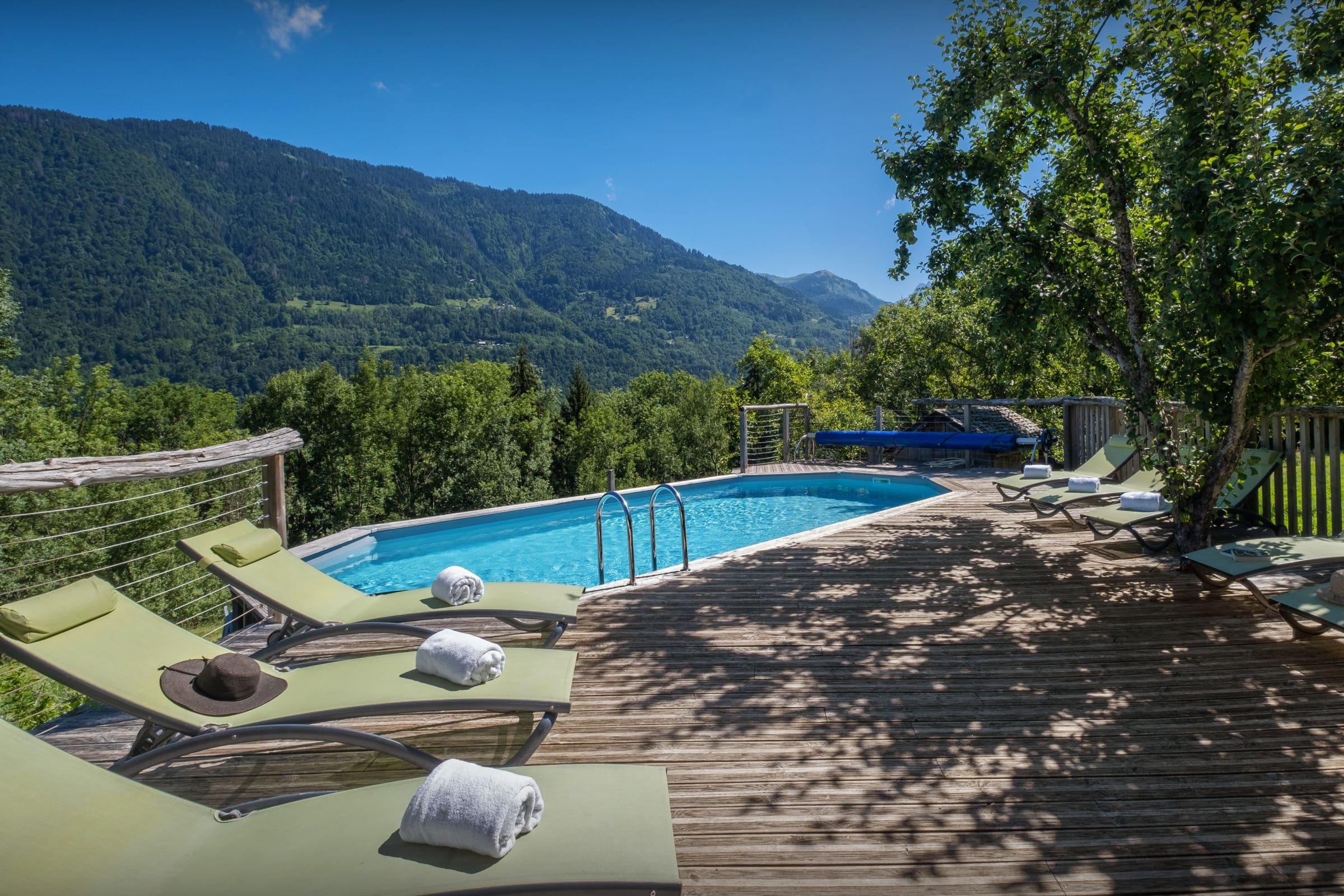 Outside, the chalet offers a heated swimming pool available from June to September, perfect for enjoying the summer sun. In winter, the private hot tub provides a serene spot to gaze at the starlit skies. The balconies and terraces offer sweeping views of the majestic Alps, making it an ideal location for al fresco dining or simply soaking in the tranquil surroundings. The chalet’s proximity to the Morillon ski lift, just a ten-minute drive away, ensures easy access to the renowned Grand Massif ski area.