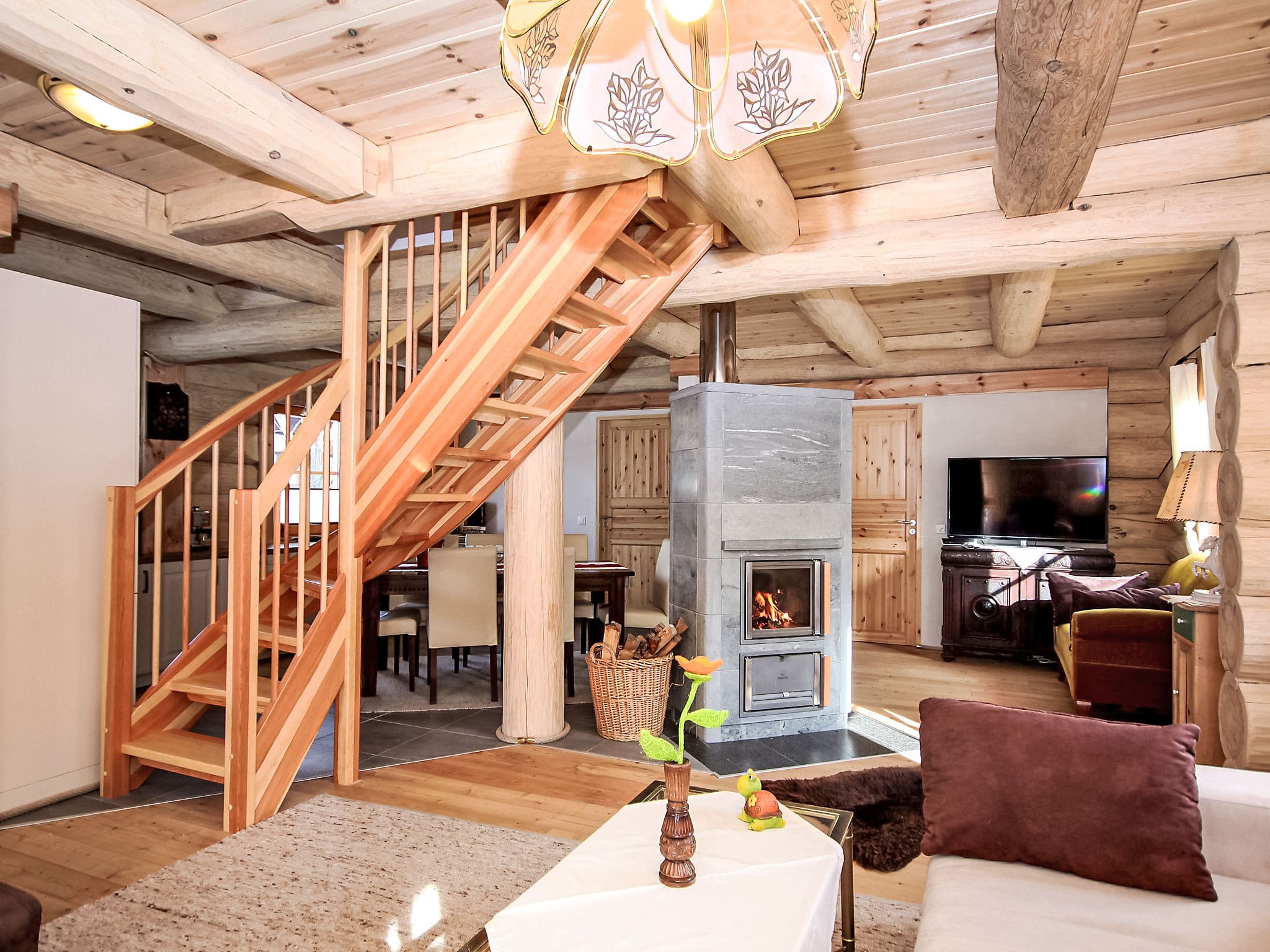 This remarkable 120-square-metre chalet showcases the finest in sustainable luxury living across two thoughtfully designed levels. The romantic wooden furnishings and authentic alpine aesthetic create an immediate sense of warmth and connection to the surrounding mountain landscape. The heart of the home features an impressive living and dining area, complete with a crackling wood-burning stove, cable television, and hi-fi system for cozy evenings after mountain adventures.