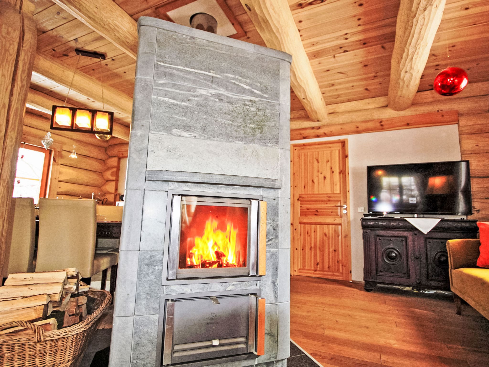 The rental includes one bundle of firewood daily, WiFi, all kitchen appliances and utensils, garden furniture, barbecue facilities, and access to the hot tub and outdoor sauna.
