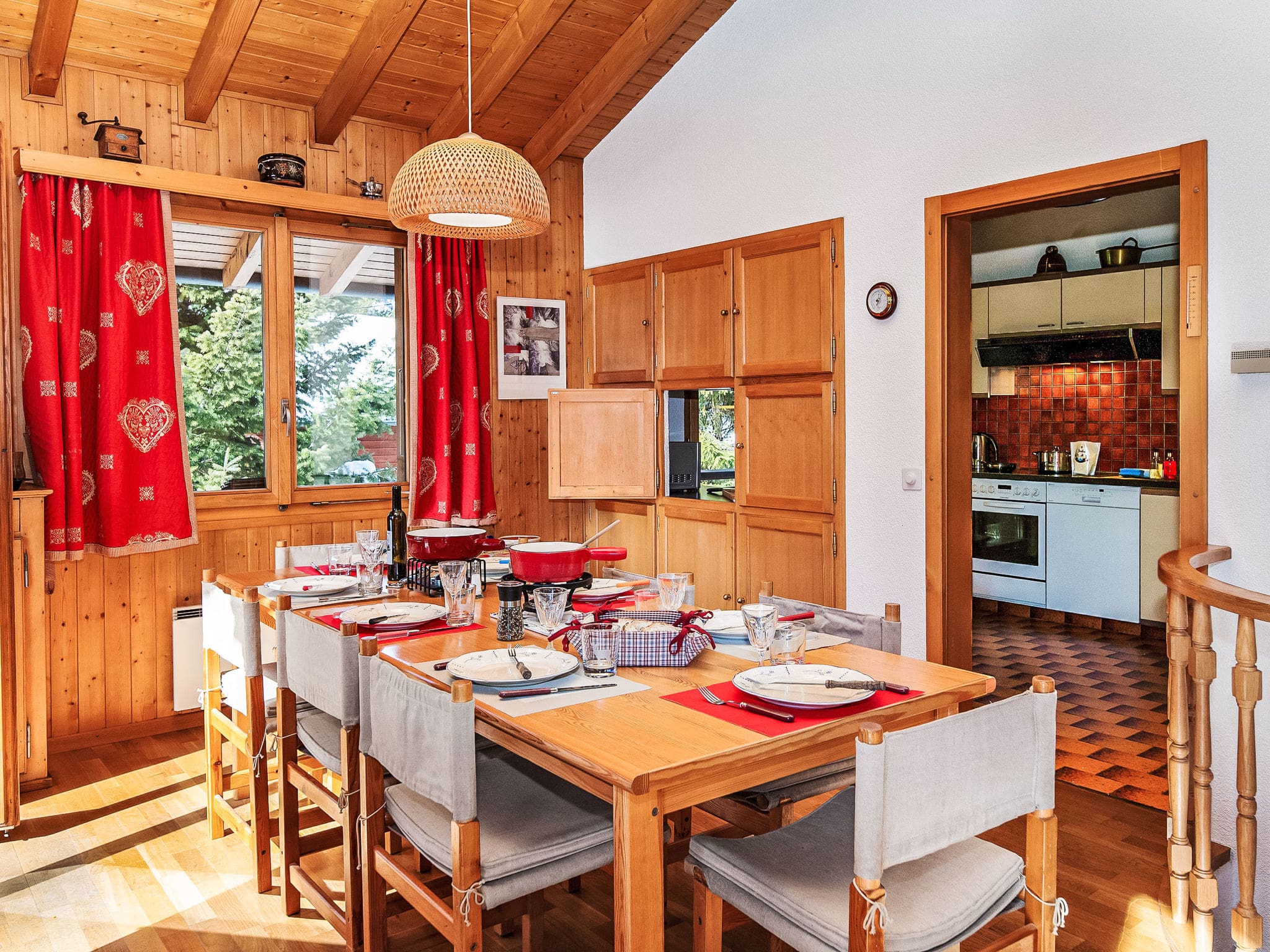 The chalet spans two thoughtfully designed levels, accommodating up to eight guests across four well-appointed bedrooms. The heart of the home features a welcoming living and dining area centered around an open-hearth fireplace, creating the quintessential alpine atmosphere for gathering after days spent exploring the mountains. The space flows seamlessly onto a terrace where guests can savor morning coffee while drinking in the spectacular mountain panorama.