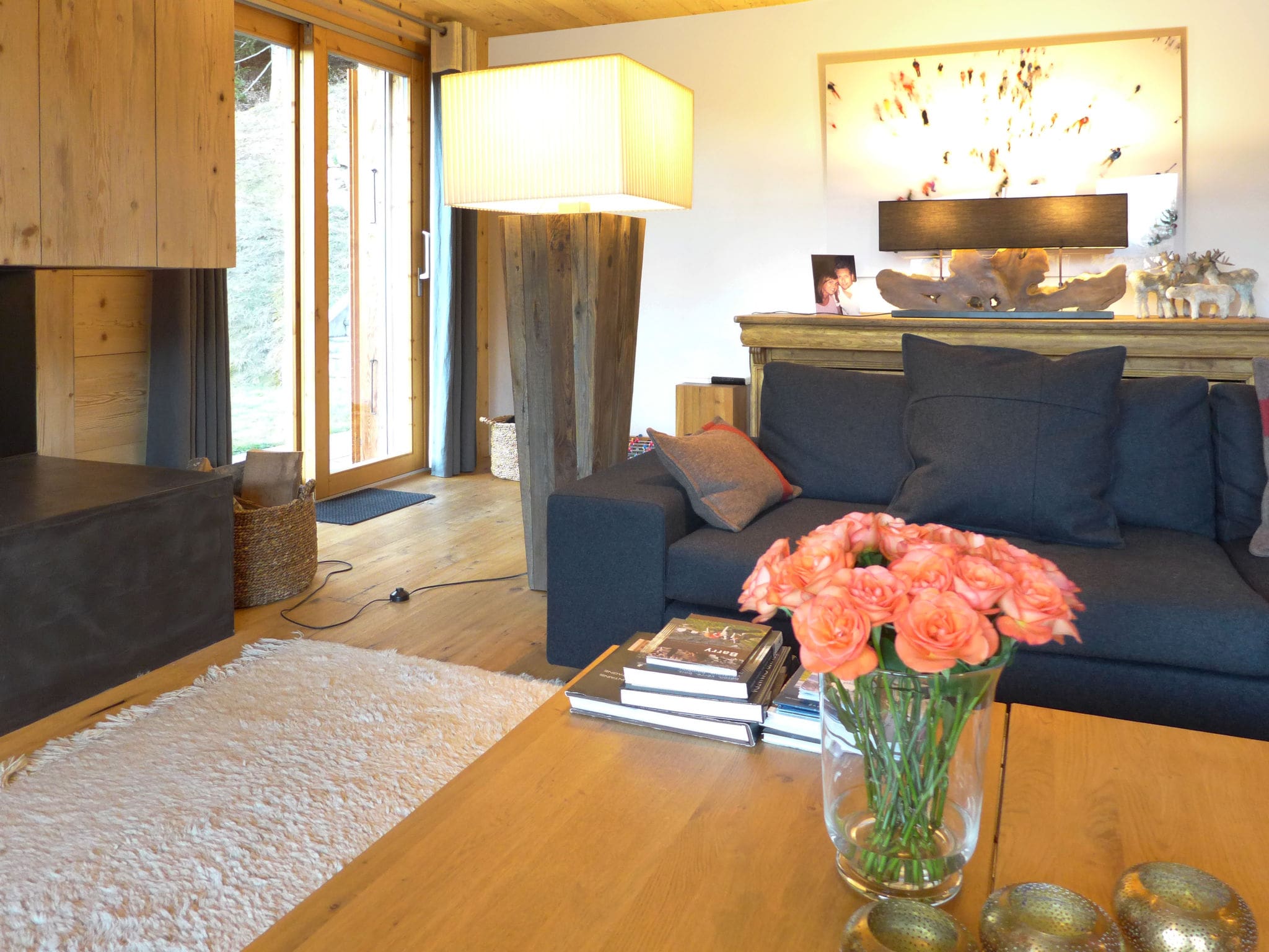 The property sits within 300 square meters of private natural gardens, offering a serene setting just 70 meters from the forest edge. The south-facing terrace provides an ideal spot for morning coffee or evening aperitifs, complete with quality outdoor furniture and barbecue facilities. During winter months, guests can enjoy the magical alpine atmosphere while staying warm with the chalet’s efficient heating system. The elevator ensures easy access throughout the property, while dedicated ski storage keeps equipment organized and accessible.