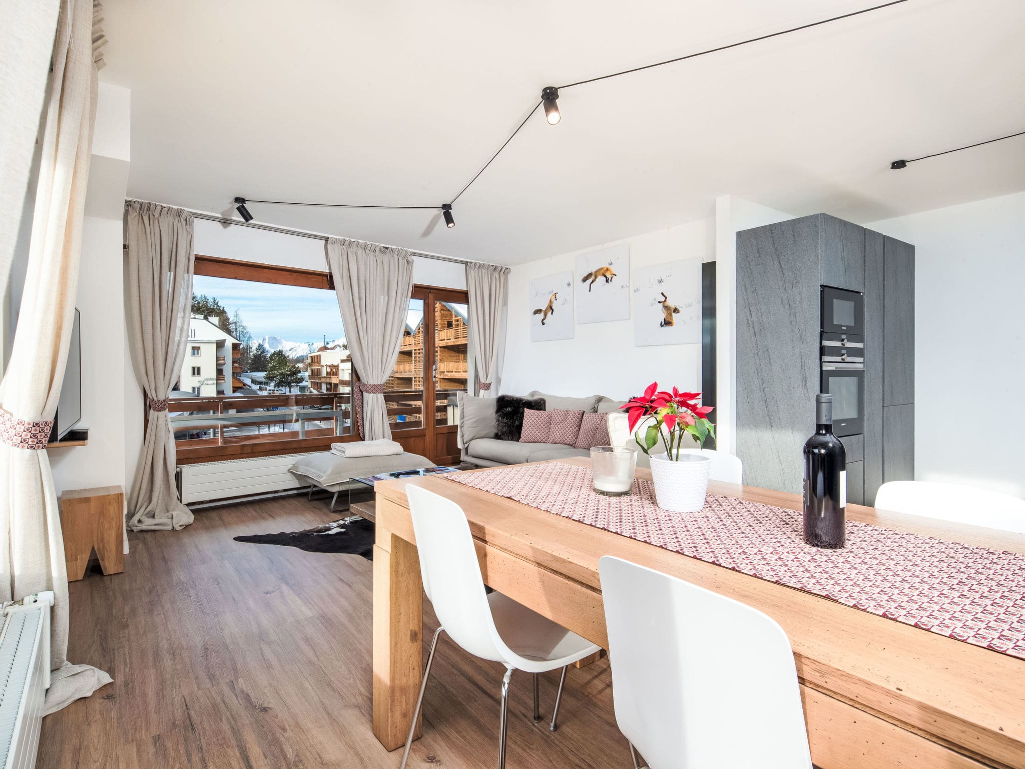 Groups of friends will enjoy the sociable living spaces and multiple balconies, creating various gathering spots throughout the property. The central location means evening entertainment lies within easy walking distance, while the well-equipped kitchen allows for memorable group meals featuring local Swiss specialities.