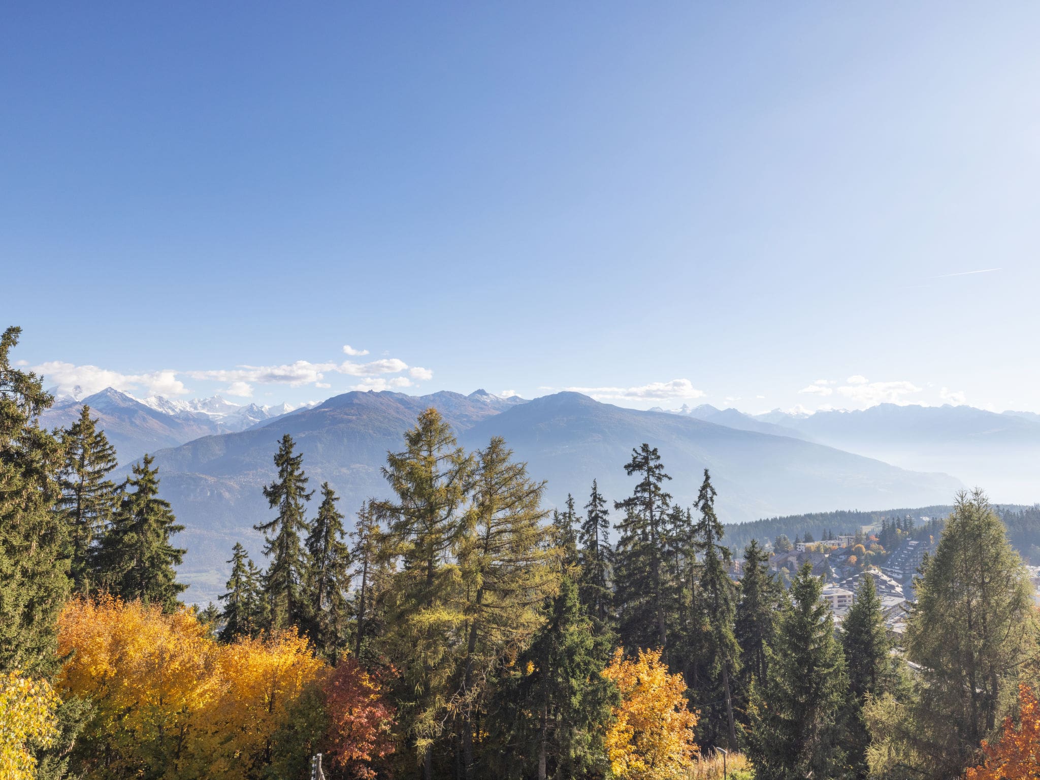 The apartment sits just 1 kilometre from Crans-Montana town centre, easily walkable or accessible via the frequent local bus service stopping 50 metres away.