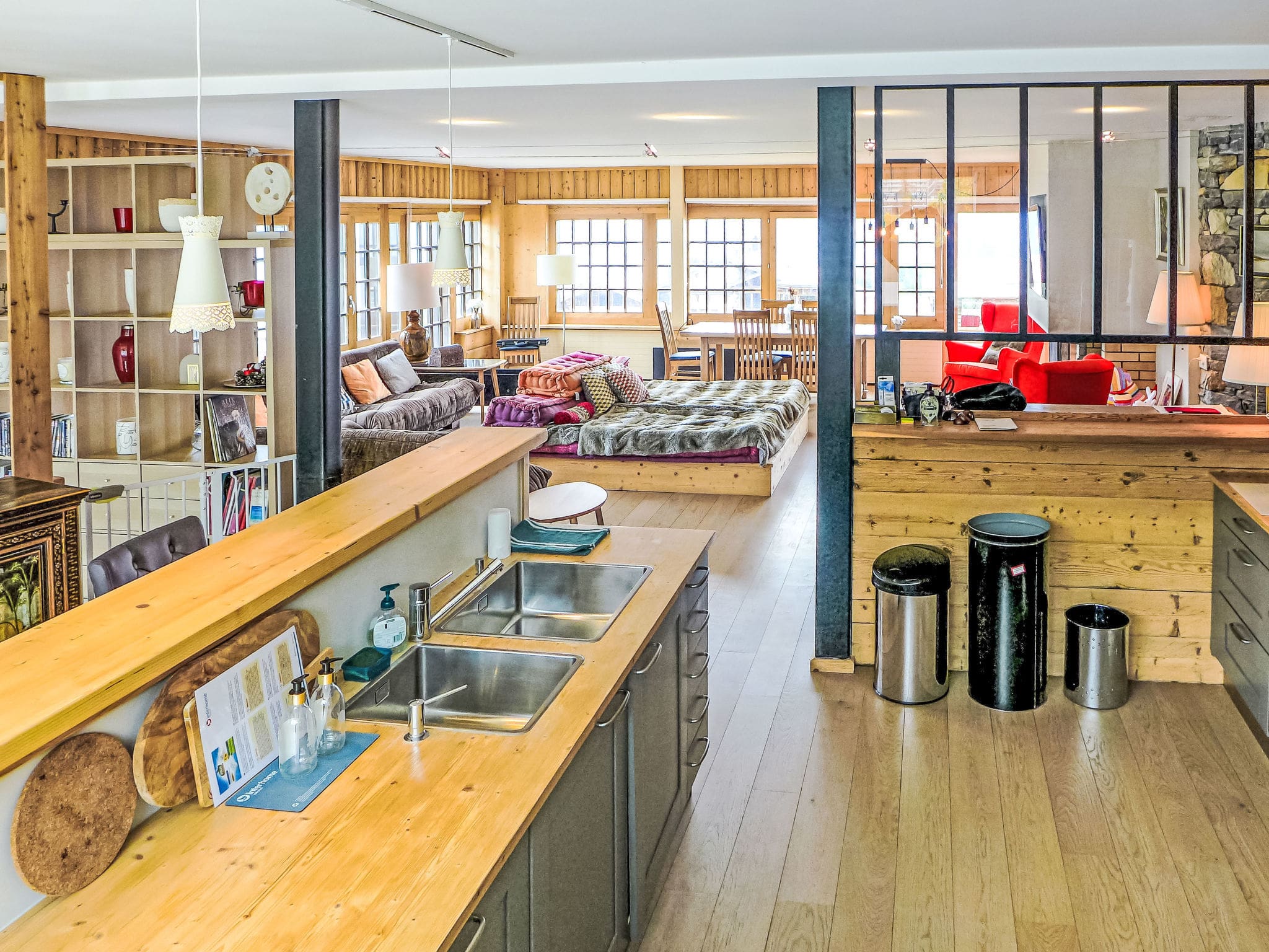 Located in the prestigious Valais region of Switzerland, this property combines luxury accommodation with environmental responsibility through features like renewable electricity, water-efficient systems, and sustainable practices. The chalet includes modern conveniences such as complimentary WiFi, cable television, hair dryer, and full kitchen equipment including dishwasher and microwave.
