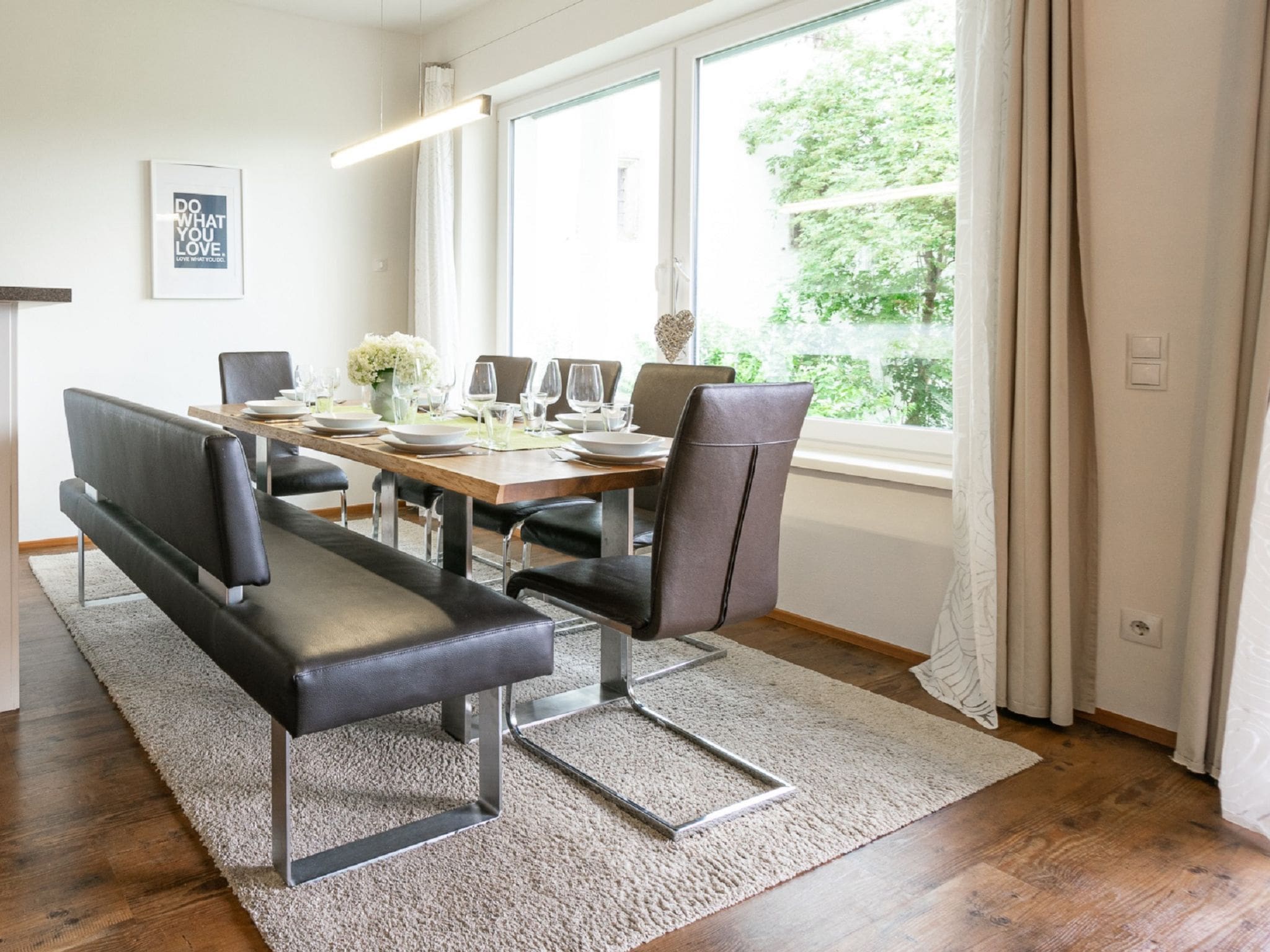 The private terrace becomes an extension of the living space during warmer months, furnished for outdoor dining and relaxation while drinking in those spectacular mountain panoramas. Guests share access to beautifully maintained gardens and meadows, providing ample space for children to play safely. An electric vehicle charging station reflects the property’s environmental consciousness, while dedicated parking ensures convenience for those exploring the region by car. The elevated position captures maximum sunshine throughout the day, making the outdoor spaces particularly inviting.