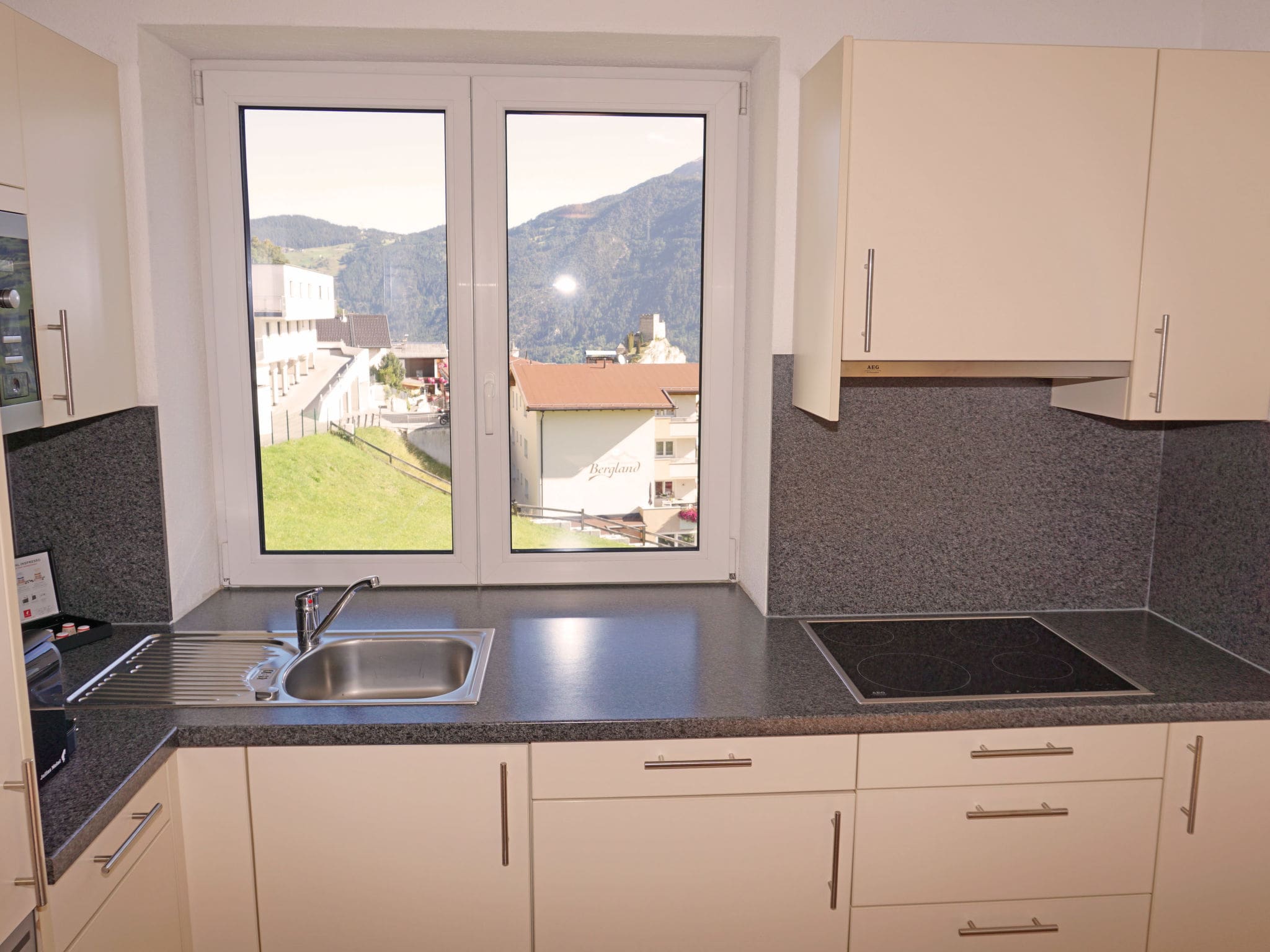 Chalet Foehn Fiss presents spacious, contemporary interiors designed with mountain living in mind. The apartment features three comfortable double bedrooms, including one with an ensuite shower room, accommodating up to six guests in refined comfort. The heart of the property is its large living and dining area, where picture windows frame the surrounding Alpine landscape and a flat-screen television provides entertainment for quieter moments. The open-plan kitchen comes fully equipped with modern appliances including a dishwasher, ceramic hob, combination microwave, and electric coffee machine, making self-catering a pleasure rather than a chore. Double-glazed windows ensure year-round comfort while maintaining the tranquil mountain atmosphere.