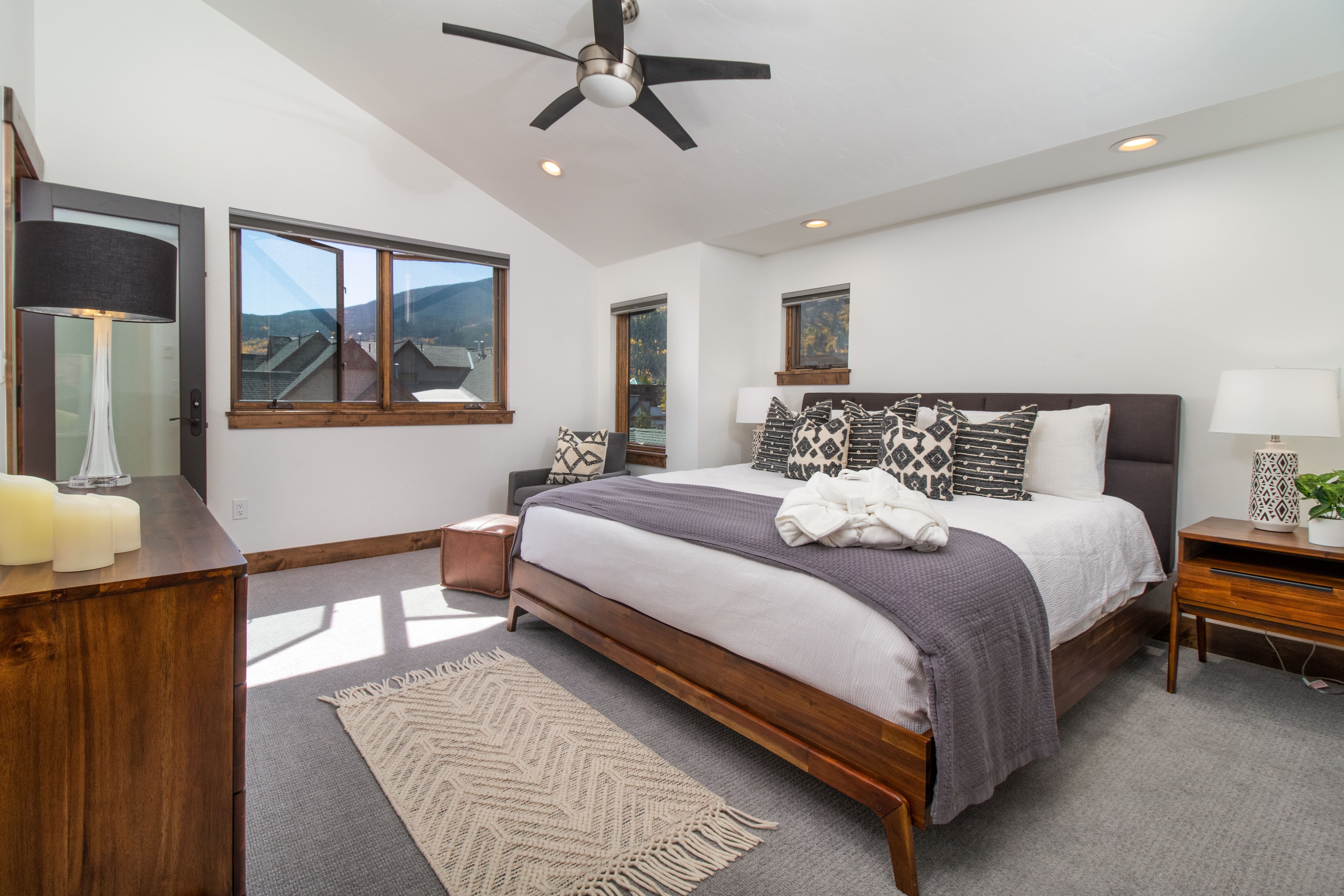 Experience the breathtaking beauty of Summit County from this chalet’s private balcony, which offers stunning views of the surrounding mountains, including the majestic Mount Evans. Although there’s no ski-in/ski-out access, the property’s convenient location means you’re just a short walk from the shuttle to the Copper and Breckenridge ski lifts, ensuring easy access to world-class skiing and snowboarding.