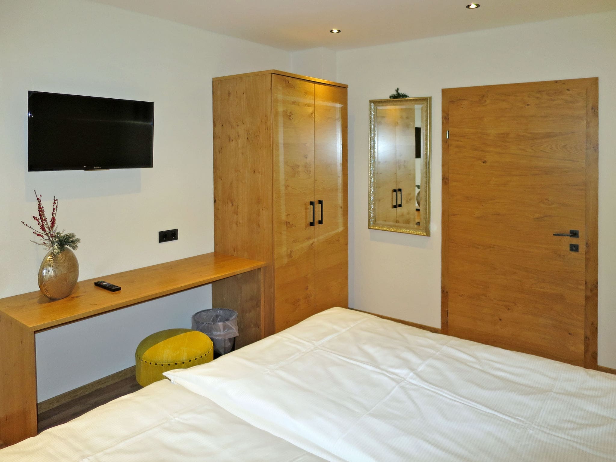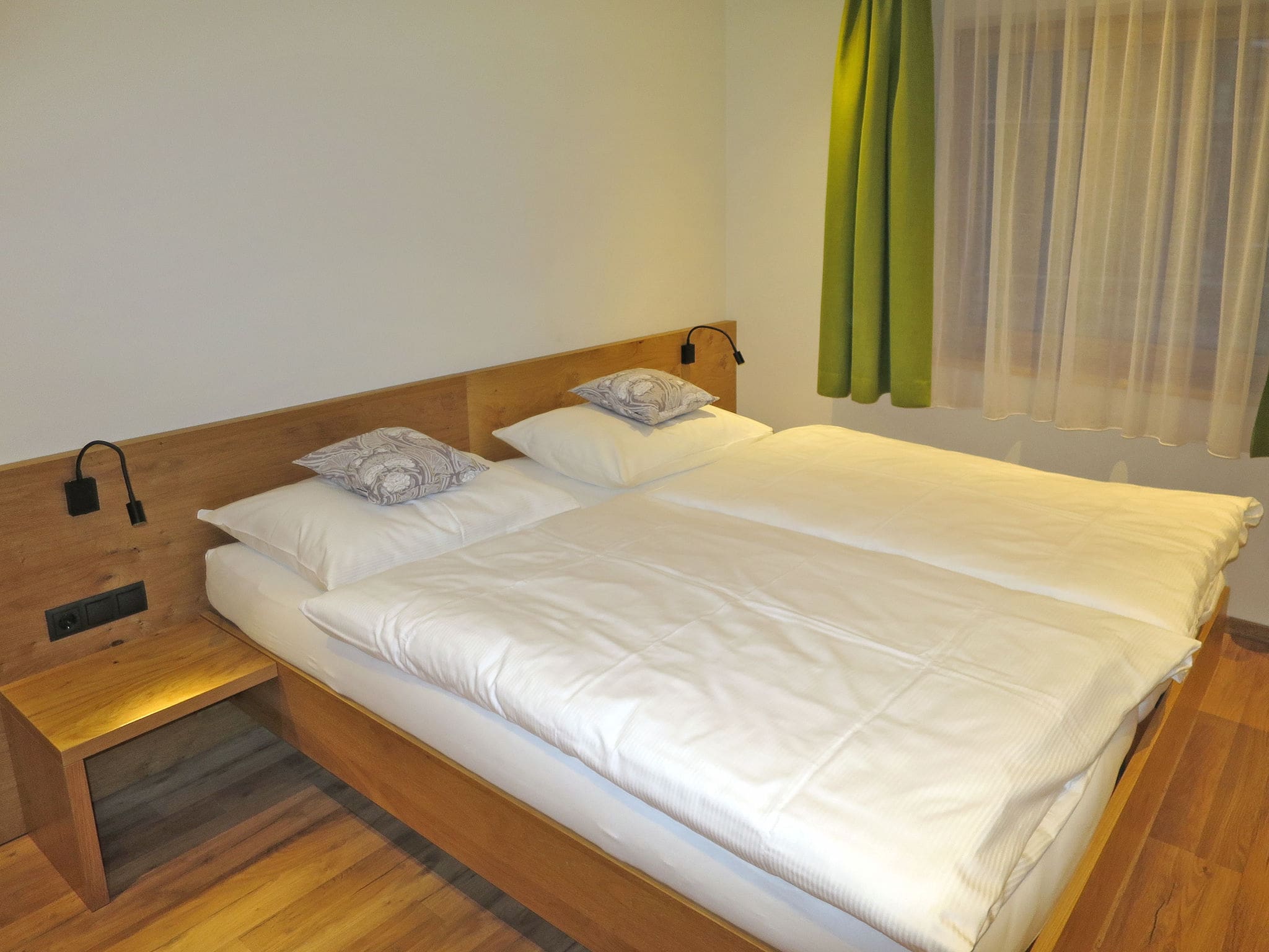 This beautifully appointed apartment spans the entire first floor, offering bright and tastefully furnished accommodation for up to 11 guests. The open-plan living and dining area features comfortable seating, satellite TV, and direct access to a private balcony where mountain air mingles with the warmth of Austrian hospitality. Four well-appointed bedrooms provide flexible sleeping arrangements, each equipped with satellite television and designed with comfort in mind. The master bedroom offers a peaceful double bed retreat, while three additional rooms feature thoughtful configurations including both single and double beds to accommodate varying group dynamics.