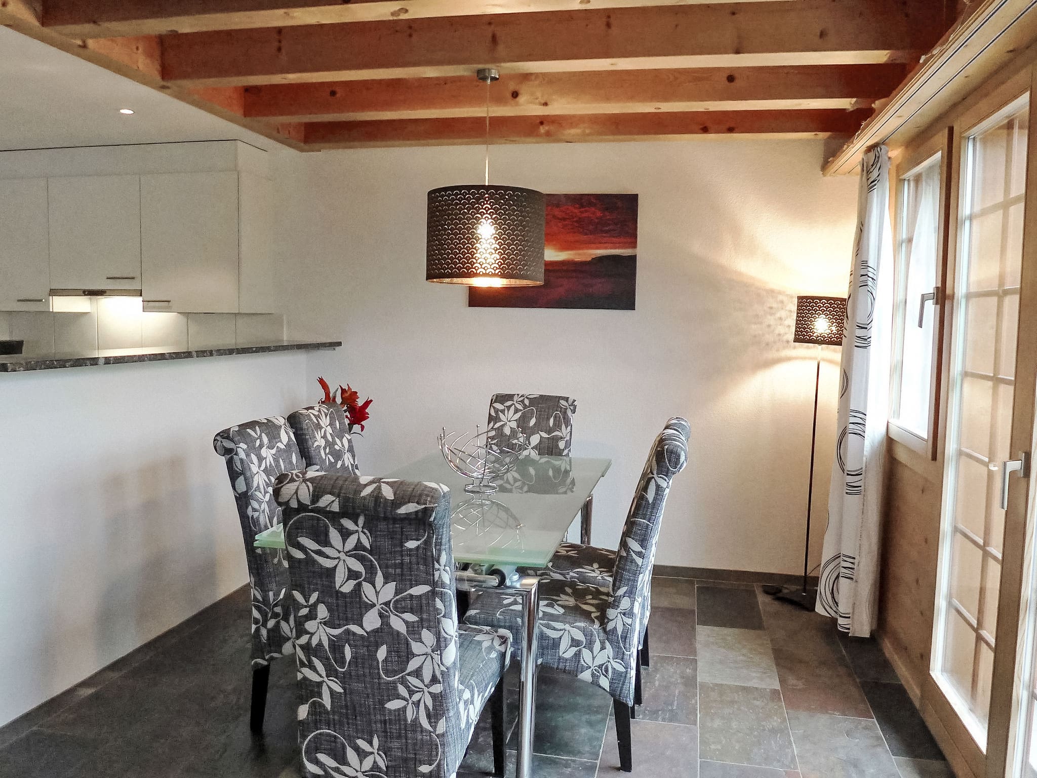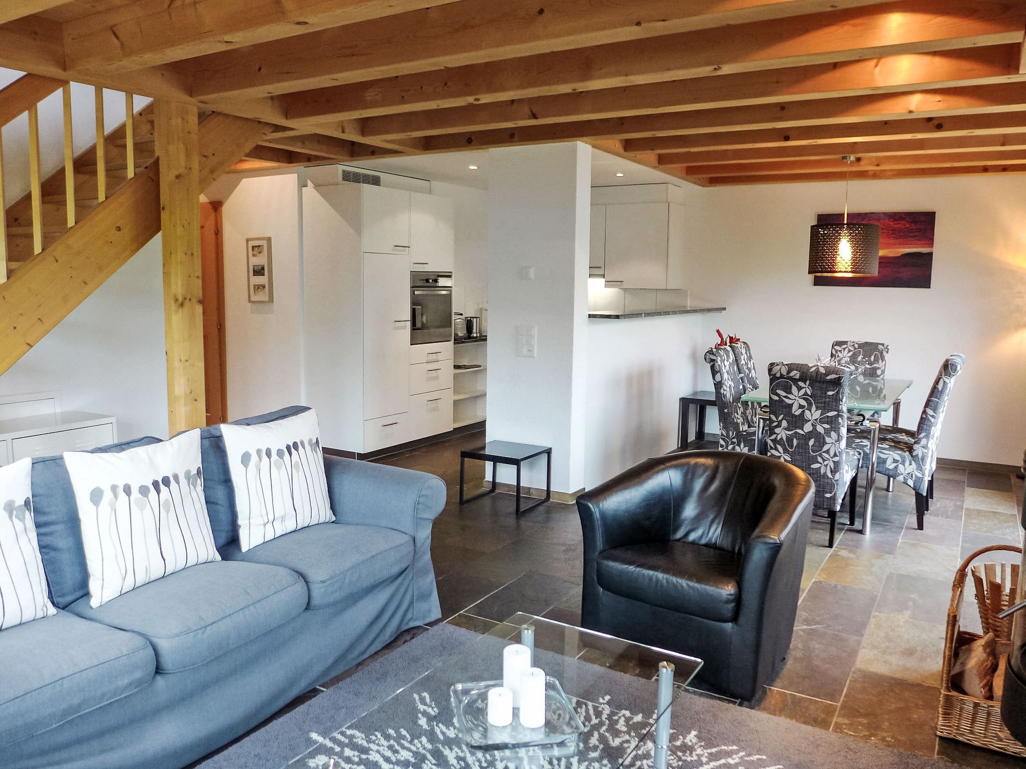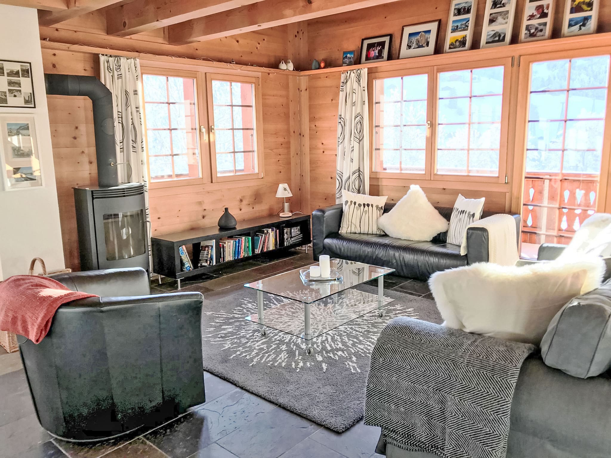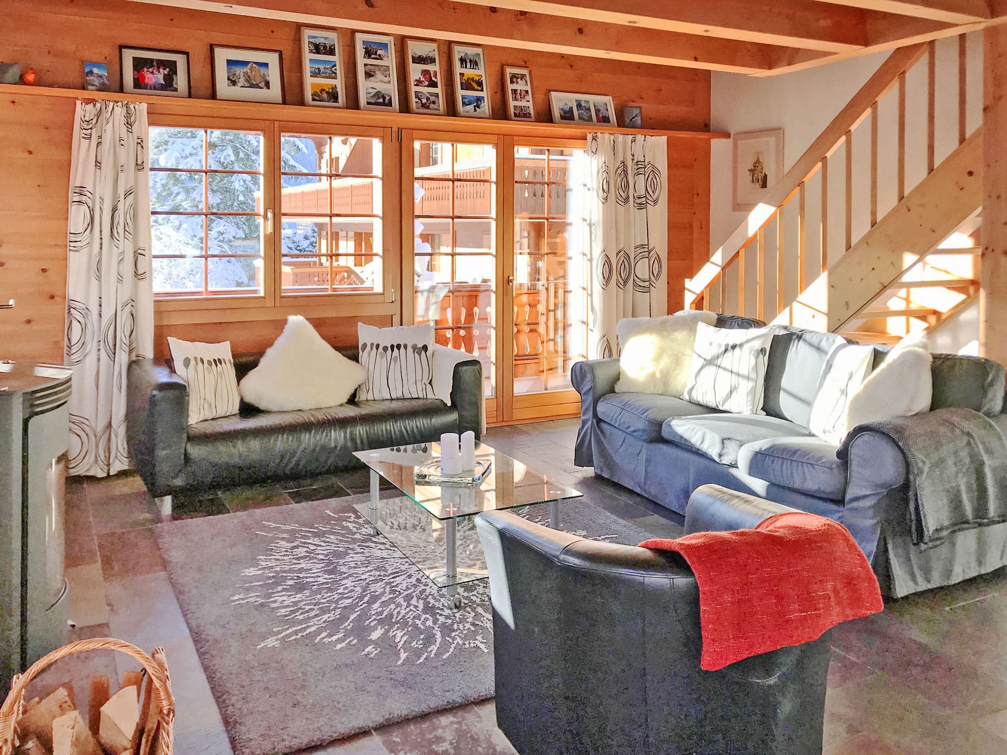 Spanning 126 square metres across two thoughtfully designed levels, this contemporary alpine penthouse combines traditional Swiss charm with modern luxury. The main living area features soaring ceilings, warm parquet flooring, and floor-to-ceiling windows that frame the dramatic mountain panorama. A beautiful Scandinavian wood stove creates a cozy focal point, while the open-plan design flows seamlessly from the living area to a fully equipped kitchen complete with premium appliances including a dishwasher, microwave, and Nespresso machine. The space comes equipped for authentic Swiss dining experiences with both raclette grill and fondue sets.