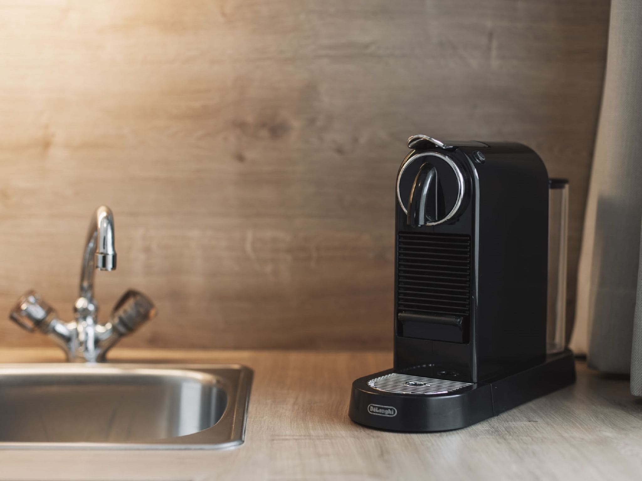 The well-appointed kitchenette features modern conveniences including a dishwasher, ceramic glass hob, electric coffee machine, and kettle, perfect for preparing hearty mountain meals or quick breakfast before hitting the slopes. Wooden floors throughout add warmth and authenticity to the contemporary Alpine aesthetic, while double-glazed windows ensure peaceful nights after adventurous days.