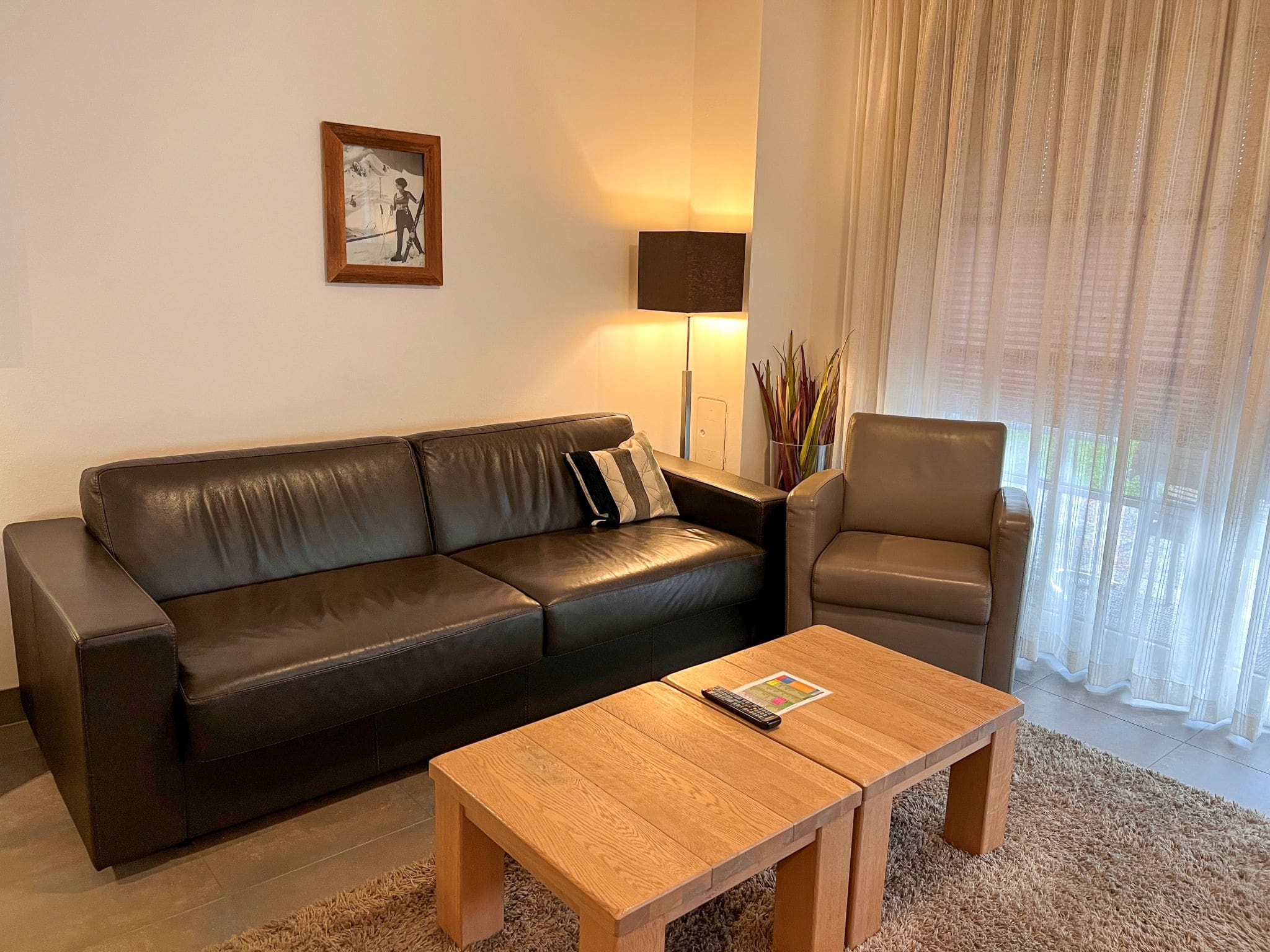 This apartment excels as a family retreat, with the ground-floor location eliminating stair navigation with luggage or small children. The indoor pool provides entertainment regardless of weather conditions, while the shared laundry facilities add practical convenience for longer stays. The covered parking garage protects your vehicle from alpine weather, while the central location means bakeries, cafes, and grocery shopping are all within comfortable walking distance.