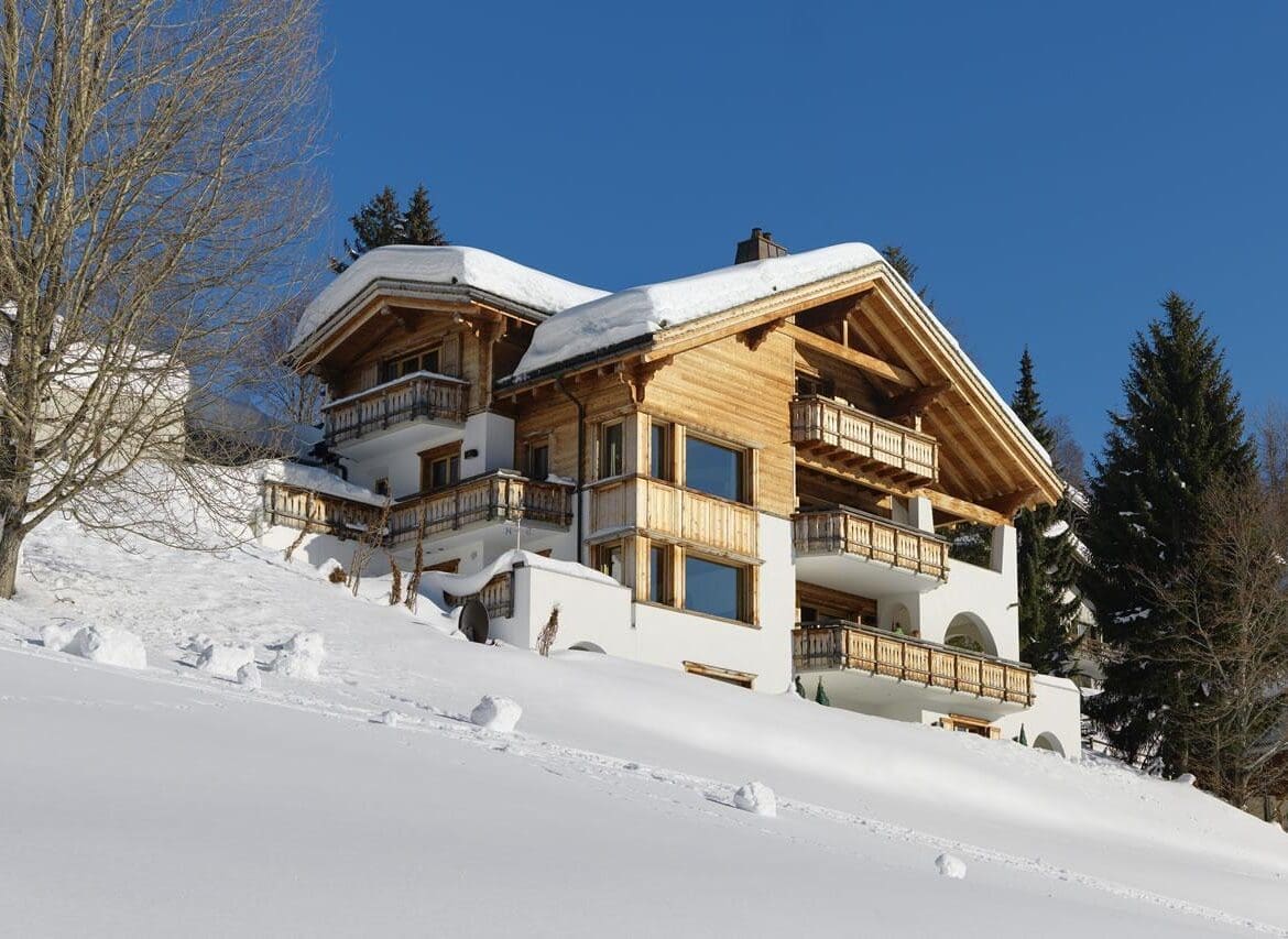 We are delighted to feature this glorious chalet in Klosters called Chalet Kublis. Set over four floors, this imposing chalet has large outdoor terraces and boasts fabulous southerly views across to the Gotschna and Kublis – they are even heated for your comfort.
