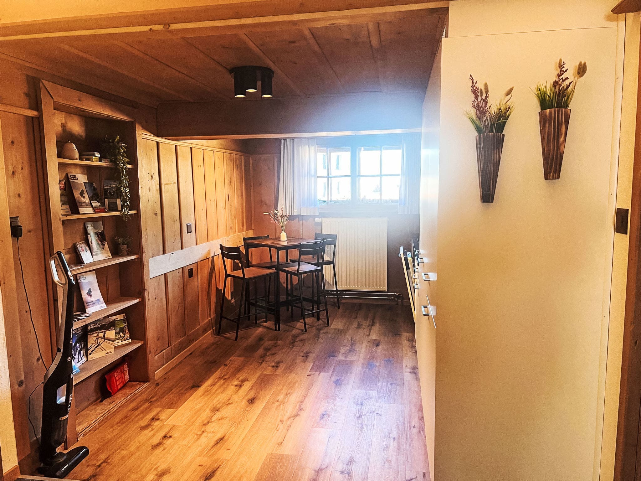 Fully renovated in 2025, this charming 4-room apartment spans 100 square metres on the third floor of the historic Gasthaus Sonne. The accommodation seamlessly blends rustic alpine character with modern comforts, featuring comfortable furnishings throughout and a thoughtful layout designed for mountain holidays. The living and dining area centres around a cosy double sofa bed and flat-screen cable television, while French doors open onto a south-facing balcony where you can savour morning coffee with panoramic mountain vistas.