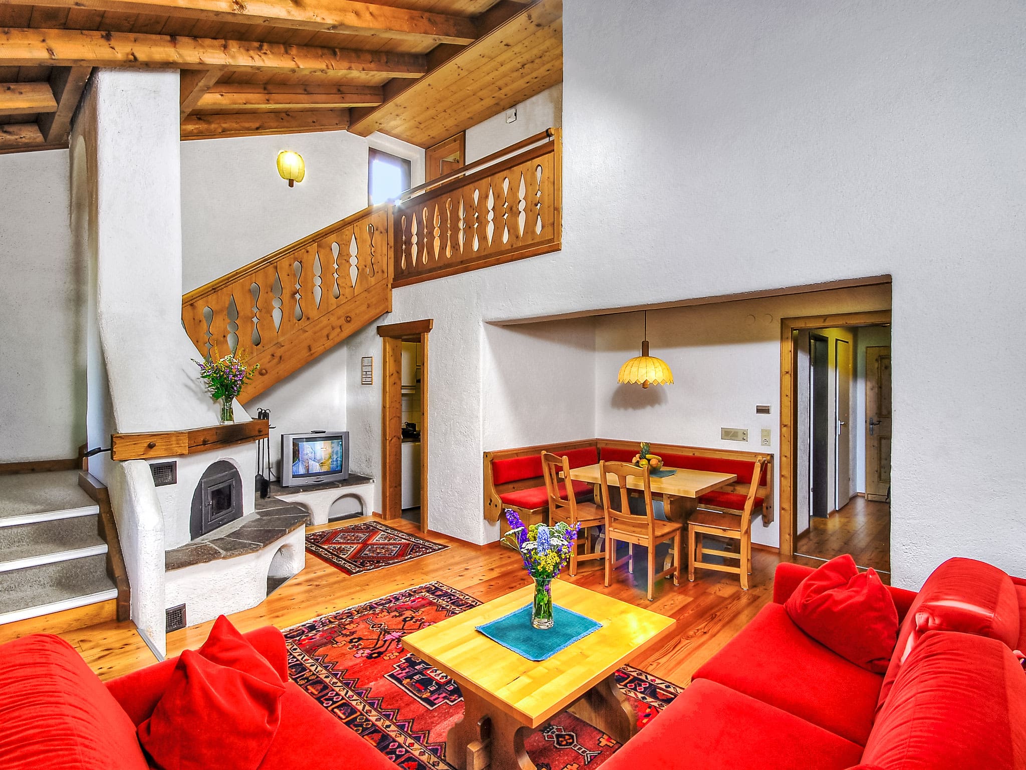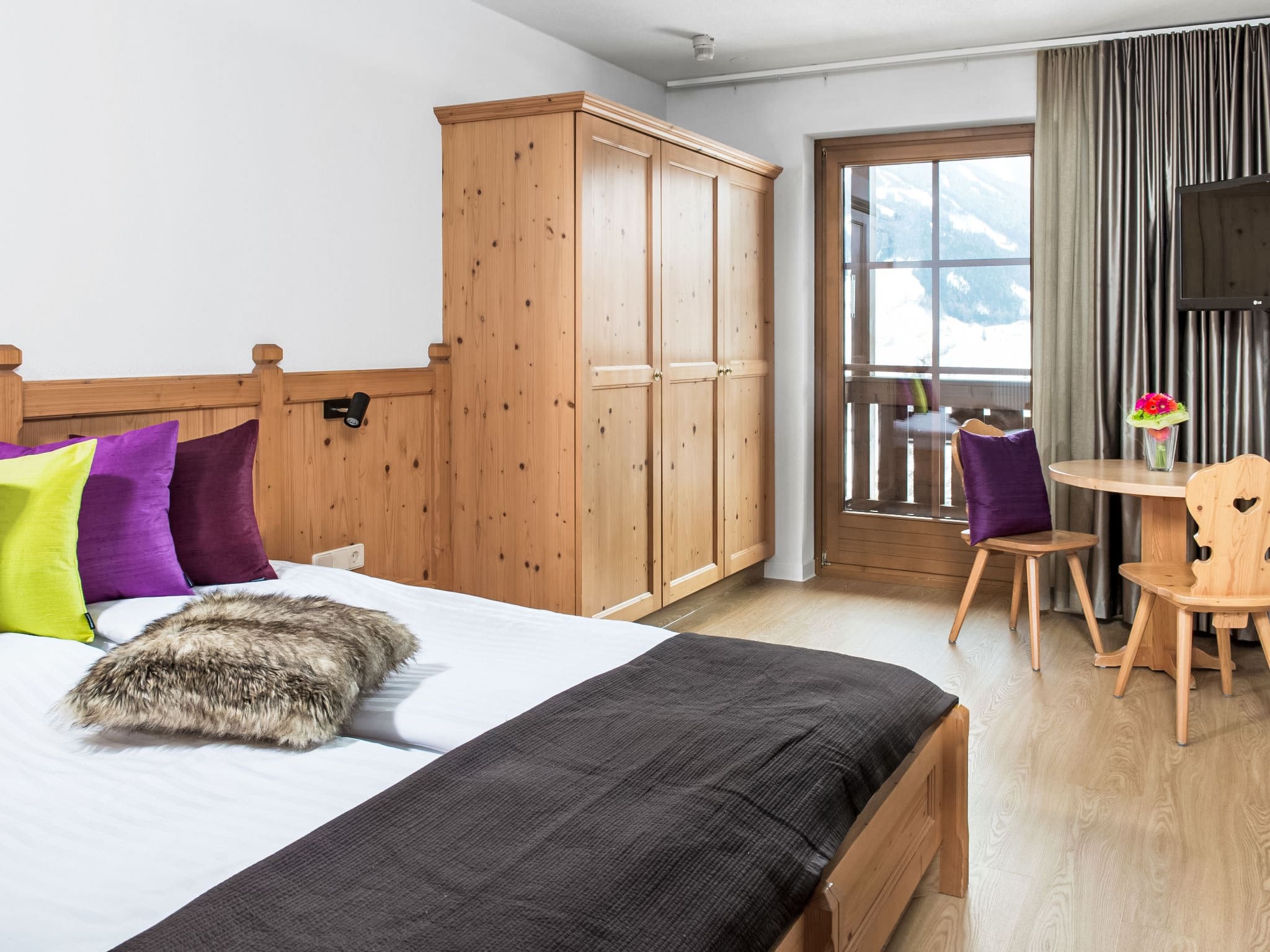 The fully equipped kitchen allows for convenient self-catering, while the modern bathroom features both a relaxing bathtub and separate WC facilities. The apartment’s crowning feature is its private sauna, offering the ultimate in relaxation after active mountain days. High-speed WiFi keeps you connected, while satellite TV provides entertainment for quieter evenings.