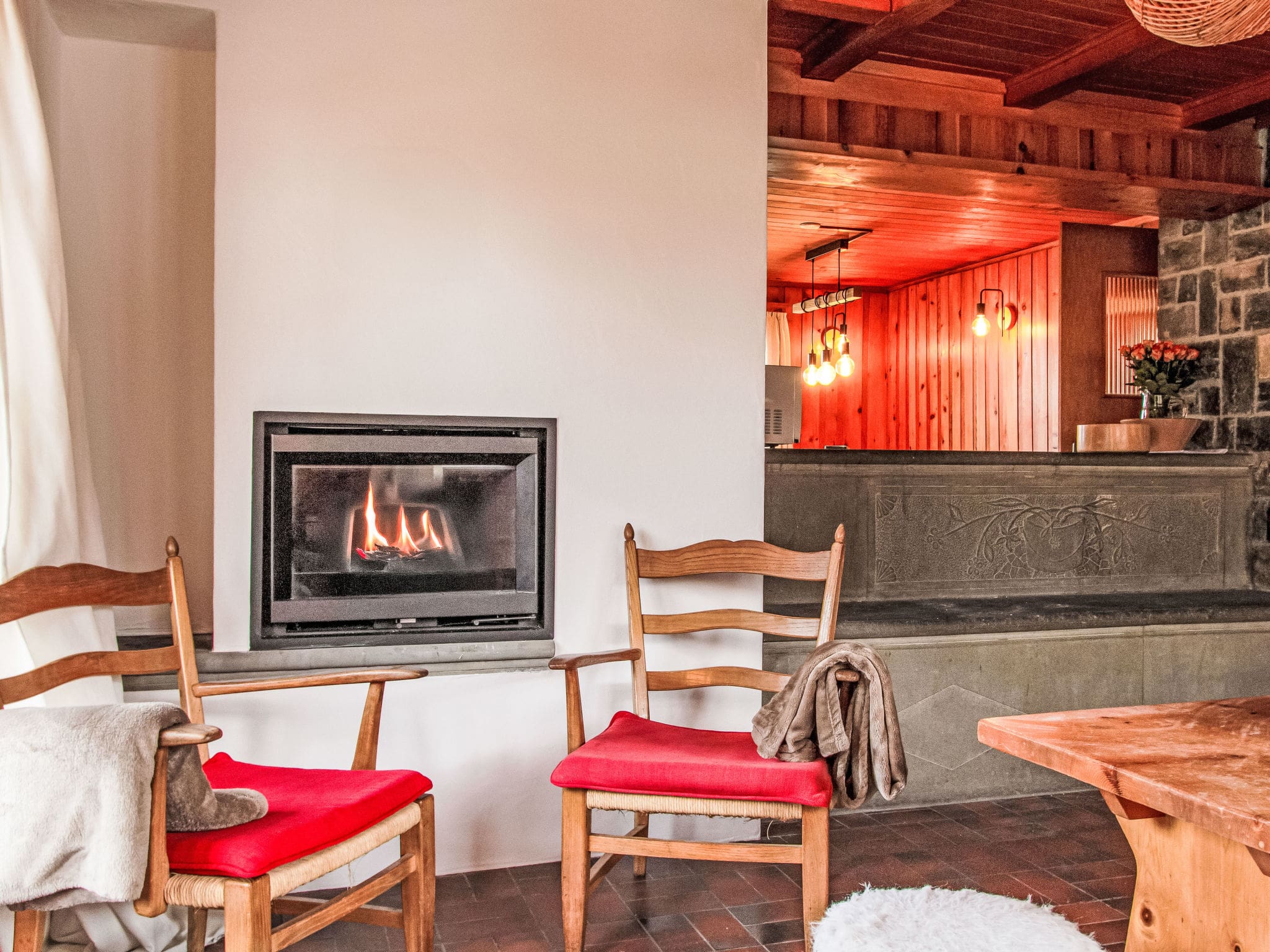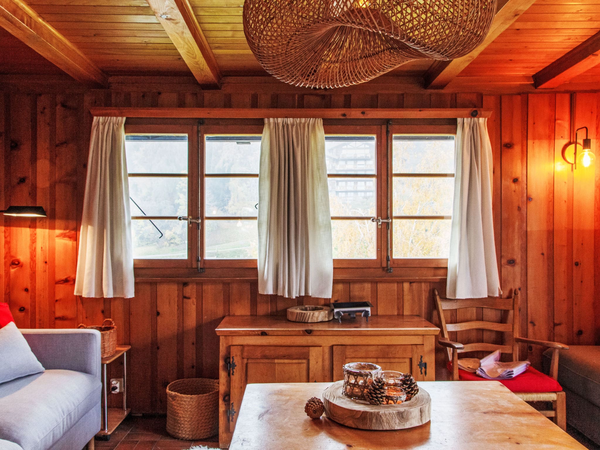 Spanning 122 square metres across two carefully designed levels, this beautifully appointed chalet showcases authentic wooden furnishings throughout. The heart of the home is the welcoming living room, complete with an open-hearth fireplace that creates the perfect atmosphere for après-ski relaxation. The well-equipped kitchen features everything needed for self-catering, including a dishwasher, microwave, electric coffee machine, and traditional raclette grill and fondue set for authentic Swiss dining experiences.