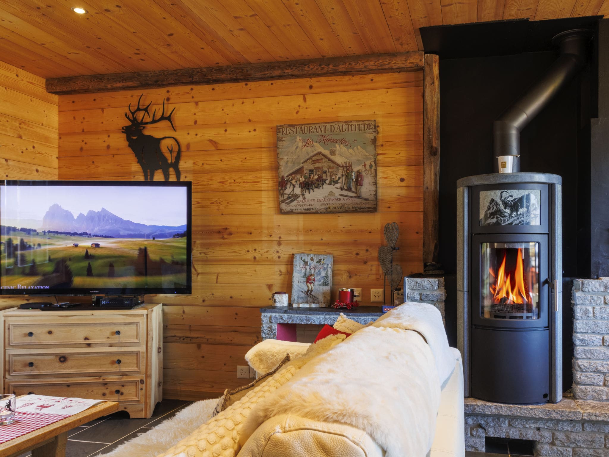 Spread across three thoughtfully designed levels, this 195-square-meter chalet showcases authentic alpine charm through its Scandinavian wood stove, tasteful wooden furnishings, and sloping ceilings that create intimate, cozy spaces throughout. The main living area features a welcoming dining space centered around the warming wood stove, while the fully equipped kitchen comes complete with modern appliances, a Dolce Gusto coffee machine, and even a traditional fondue set for authentic Swiss dining experiences. Four bedrooms accommodate up to nine guests across the property’s multiple levels, including a charming top-floor space accessed by ladder that adds adventure for older children and adults. Two well-appointed bathrooms, one featuring a relaxing bathtub, serve the accommodation perfectly.
