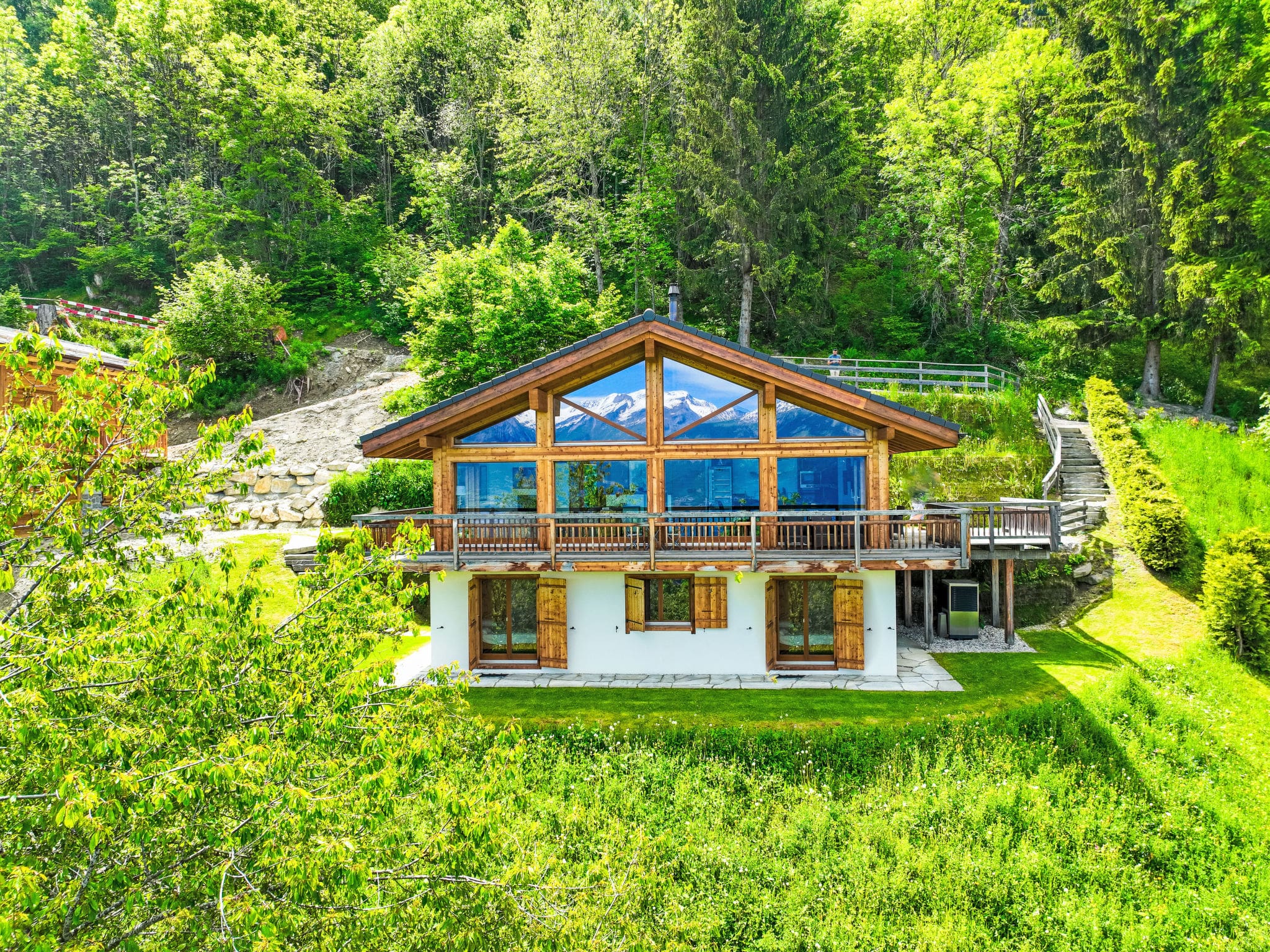 This chalet excels for family holidays and group gatherings, with dedicated children’s facilities including a high chair and baby cot. The property comfortably houses four adults and four children, with flexible sleeping arrangements across the three bedrooms. The children’s bunk bed room creates a fun space for younger guests, while the sauna provides adult relaxation opportunities. A ski storage room with boot dryer ensures equipment stays organised and ready for mountain adventures. The ecological heating system and LED lighting demonstrate environmental consciousness, while double-glazed windows ensure comfort throughout the seasons.