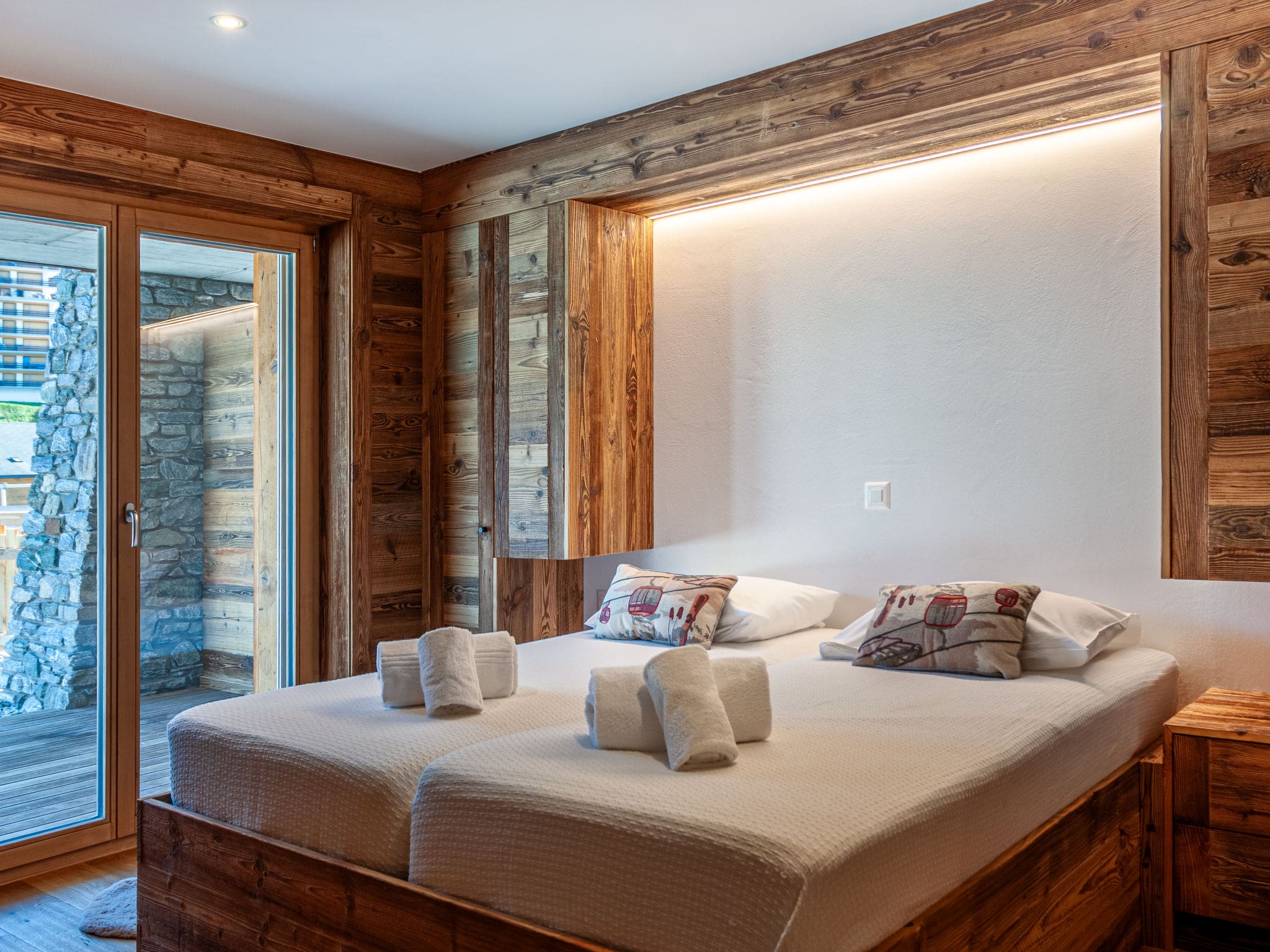 Spanning 140 square metres across a single level, this meticulously designed chalet accommodates up to eight guests in three beautifully appointed bedrooms, each with its own private bathroom. The master bedroom features a luxurious French bed, while the second bedroom offers twin beds that can be configured as a double. A dedicated children’s room with two sets of bunk beds makes this property ideal for families seeking premium Alpine accommodation.