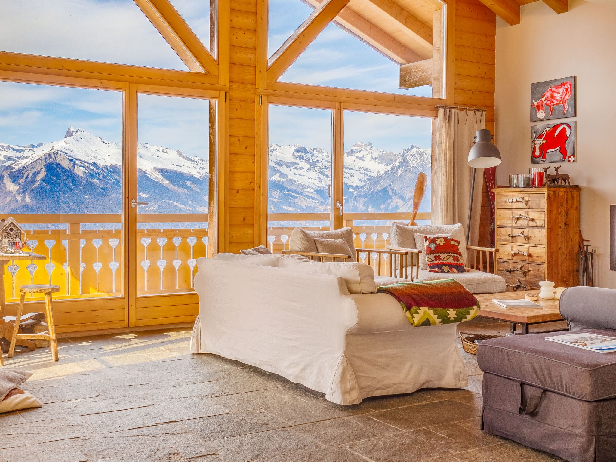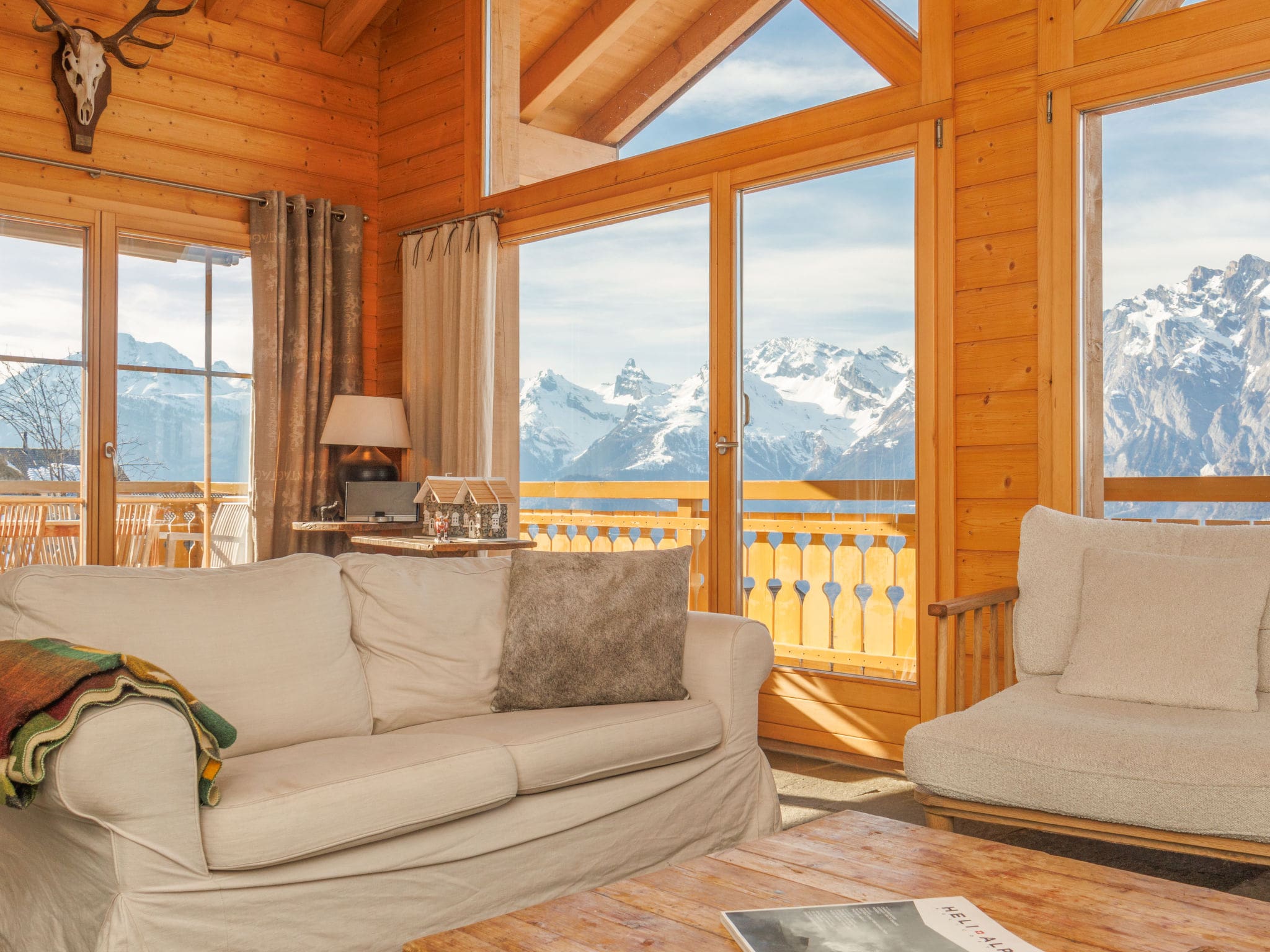 Nendaz forms part of the extensive 4 Vallées ski domain, offering access to over 400 kilometres of pistes. The Nendaz region provides year-round activities, from world-class skiing in winter to hiking and mountain biking during summer months. The gondola lift sits just two kilometres away, while a complimentary ski bus stops 600 metres from the chalet, providing convenient access to the slopes. The famous thermal baths of Saillon lie within easy reach, perfect for post-ski relaxation.