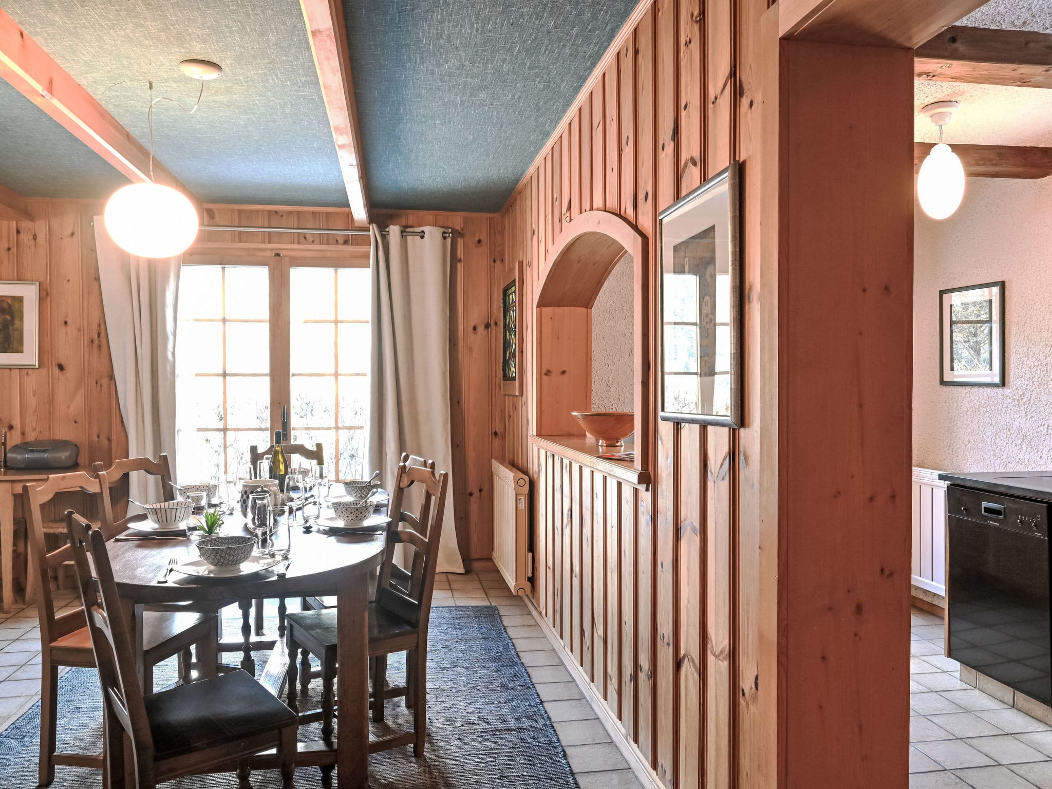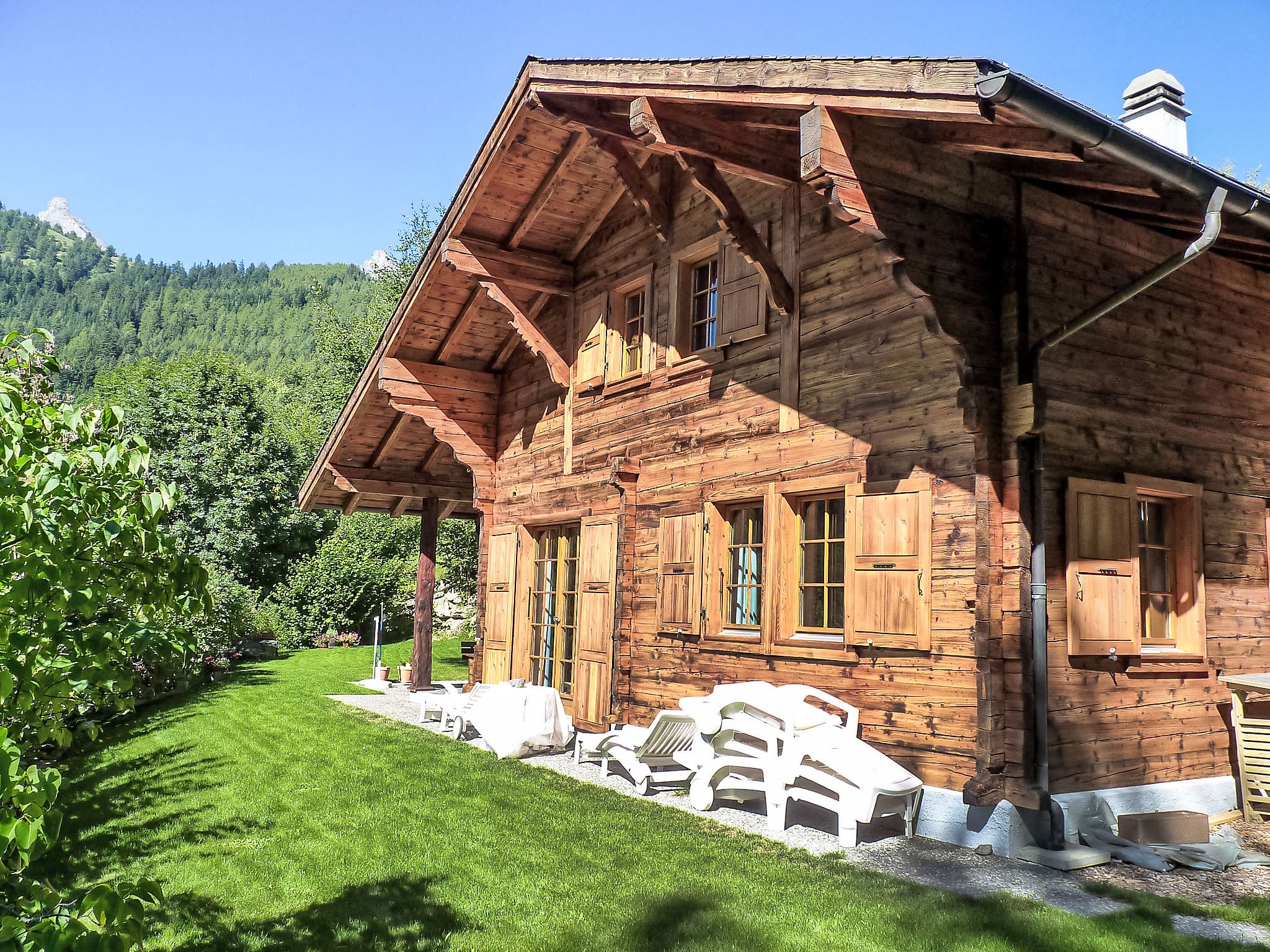 The chalet sits on a generous 602-square-meter private plot featuring manicured lawns and mature landscaping. The south-west facing position ensures abundant sunshine throughout the day, while the elevated location provides unobstructed views of the surrounding Alpine peaks. A furnished terrace becomes an outdoor living room during warmer months, ideal for al fresco dining and evening aperitifs.