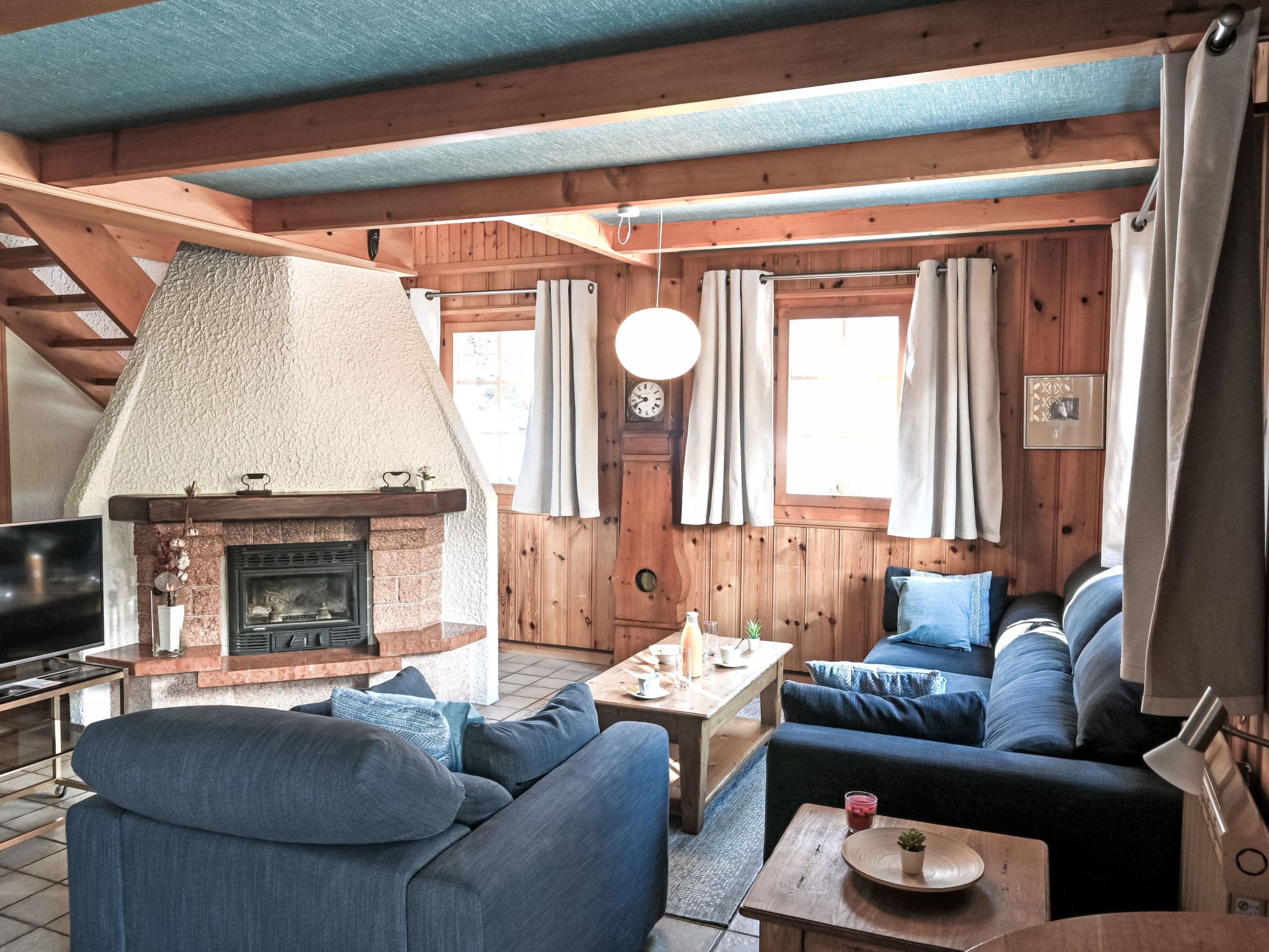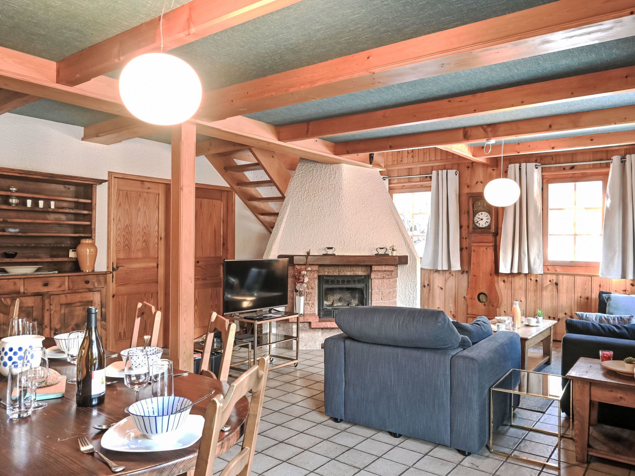 Spread across two thoughtfully designed levels, this 135-square-meter chalet showcases comfortable and tasteful furnishings throughout. The heart of the home features an inviting living and dining area with a decorative open-hearth fireplace, perfect for gathering after mountain adventures. Floor-to-ceiling windows flood the space with natural light while providing spectacular mountain panoramas that change with the seasons.