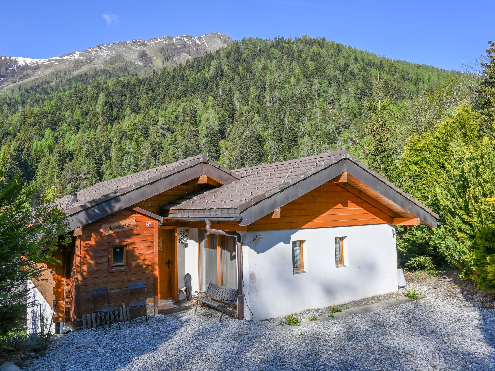 Summer guests can enjoy the portable barbecue for al fresco meals, complemented by comfortable terrace furniture and deck chairs positioned to capture the best mountain views. The property’s sunny position ensures outdoor spaces remain inviting throughout much of the day, while the surrounding trees provide natural privacy and Alpine atmosphere.