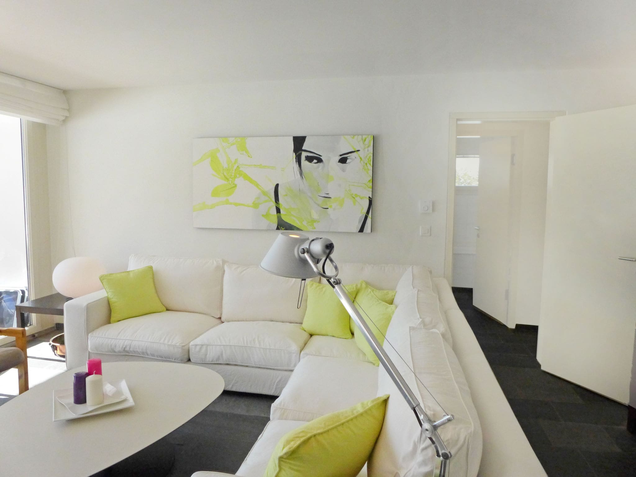 The rental includes all modern amenities, WiFi, covered parking, access to building facilities, and basic kitchen equipment including a Nespresso coffee machine.