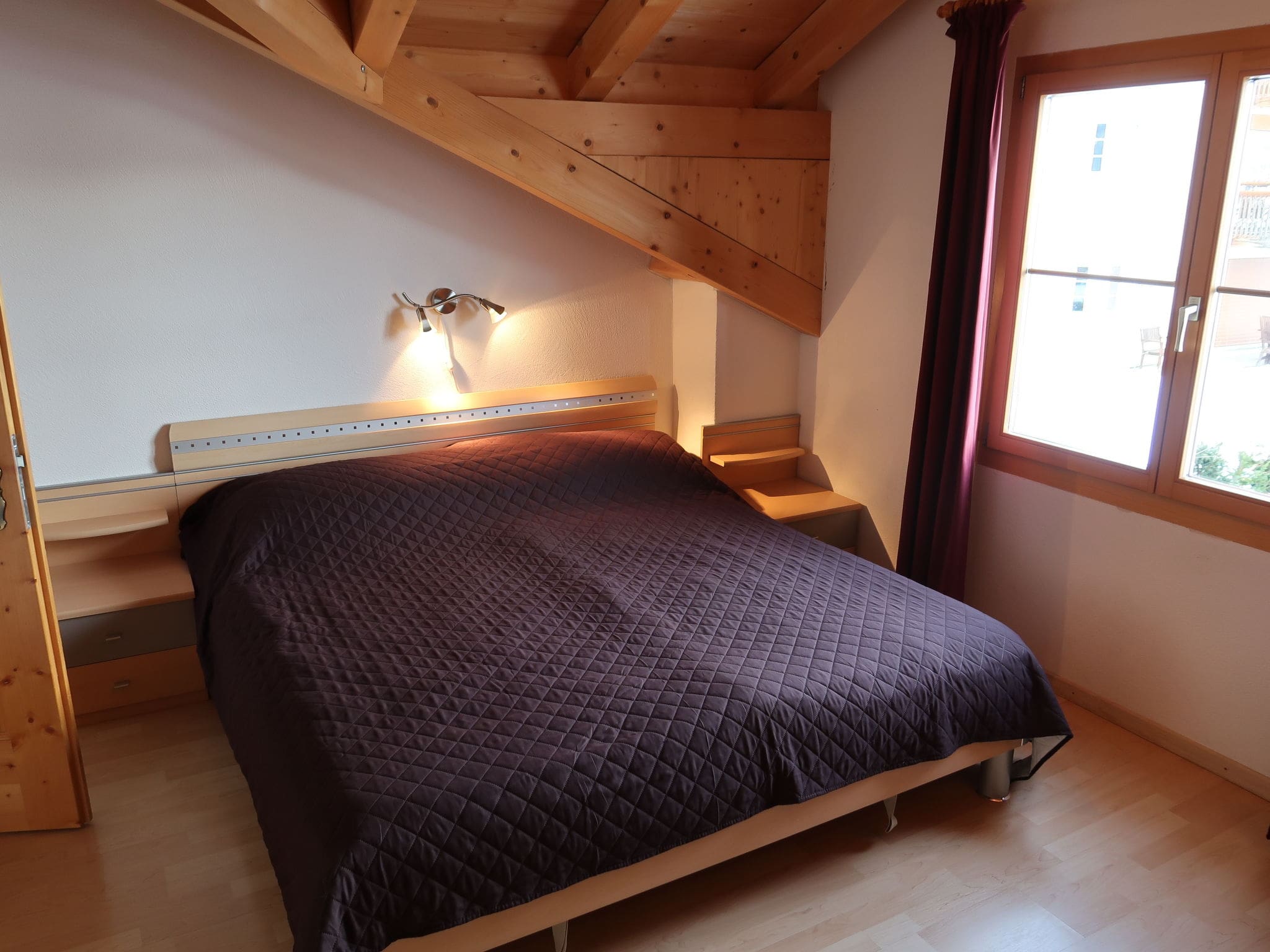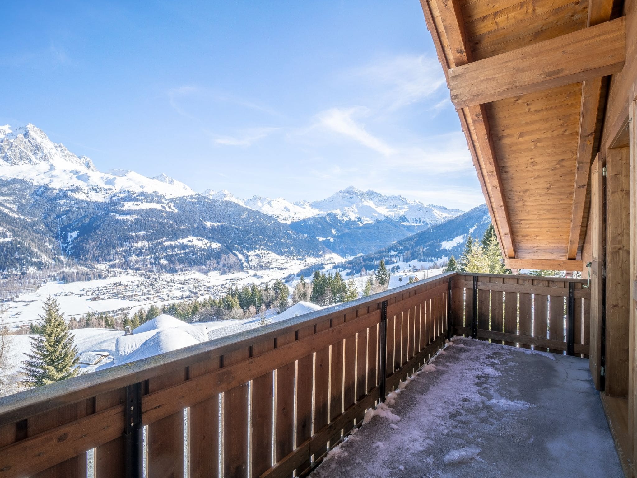 The elevated position in Tigignas provides a tranquil escape from busier resort areas while maintaining excellent access to outdoor activities. The property sits in a quiet cul-de-sac location with stunning mountain panoramas visible from the private balcony. During winter months with good snow conditions, the chalet can be reached directly on skis, offering a unique ski-in experience. The building includes dedicated ski storage and covered parking facilities.