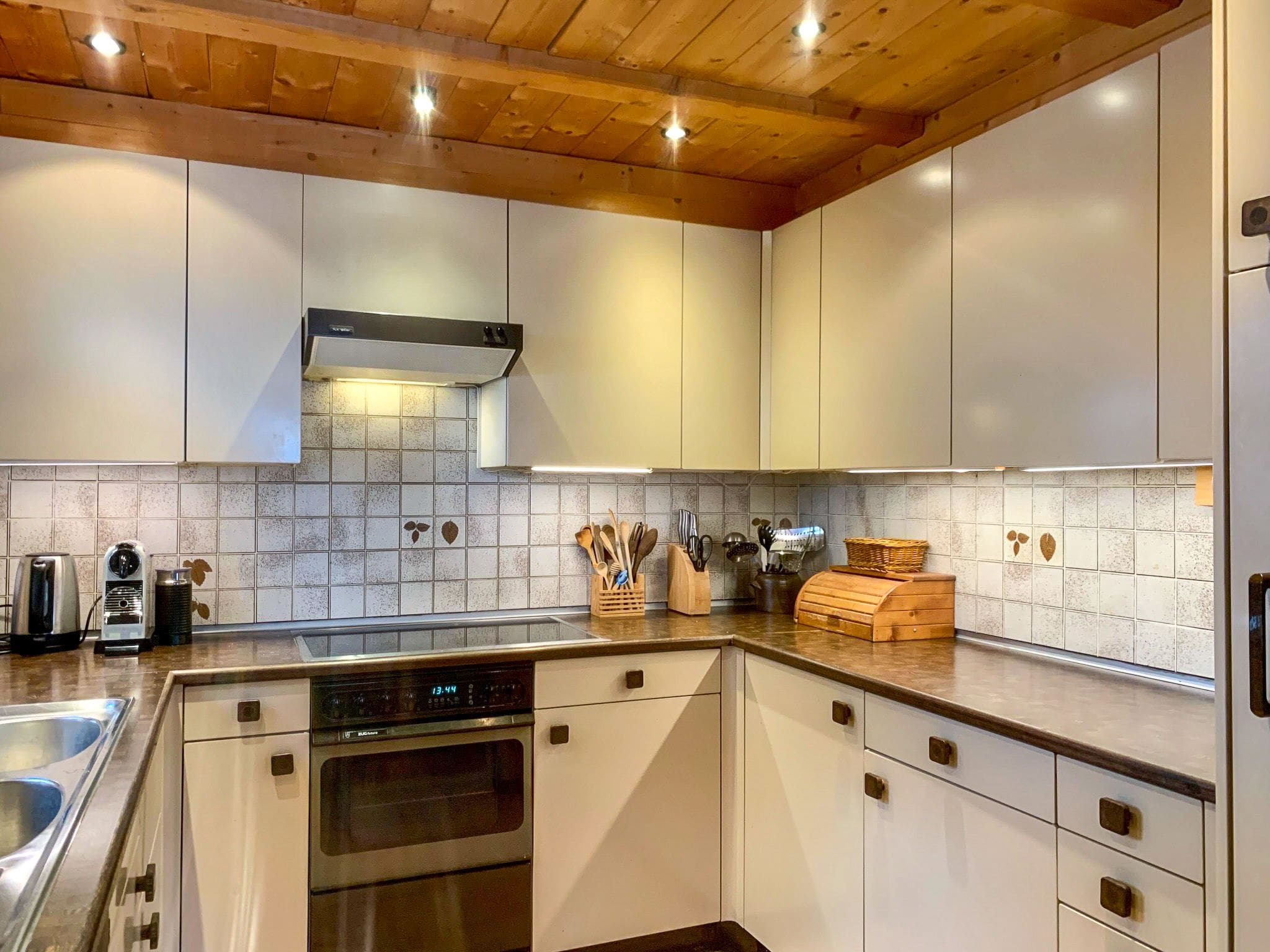 The chalet’s thoughtfully designed interior spans two levels, featuring a welcoming living and dining area anchored by an open-hearth fireplace that creates the perfect atmosphere for evening gatherings. The open-plan kitchen comes fully equipped with modern amenities including an oven, dishwasher, ceramic hob, and specialist alpine touches like a raclette grill and fondue set for authentic Swiss dining experiences. Four comfortable bedrooms accommodate up to eight guests, with flexible sleeping arrangements including double beds and bunk bed configurations ideal for families. Two well-appointed shower rooms complete the accommodation, while electric and wood heating ensure year-round comfort.