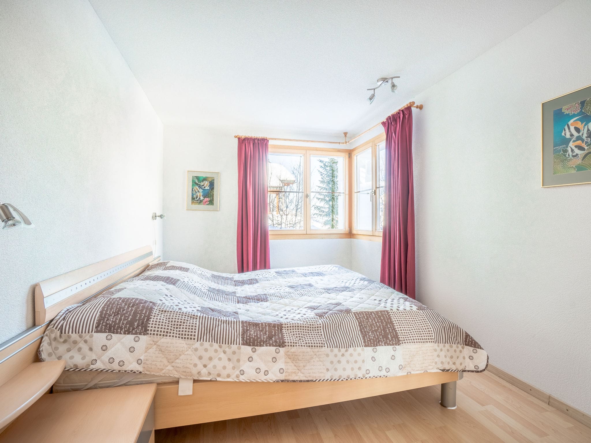 Accommodation comprises two comfortable double bedrooms and a family-friendly room with twin bunk beds, allowing the property to sleep up to eight guests. The property includes both a full bathroom with bathtub and a separate shower room, ensuring convenience for larger groups. Double-glazed windows throughout provide excellent insulation while maintaining the stunning mountain vistas that define this remarkable location.