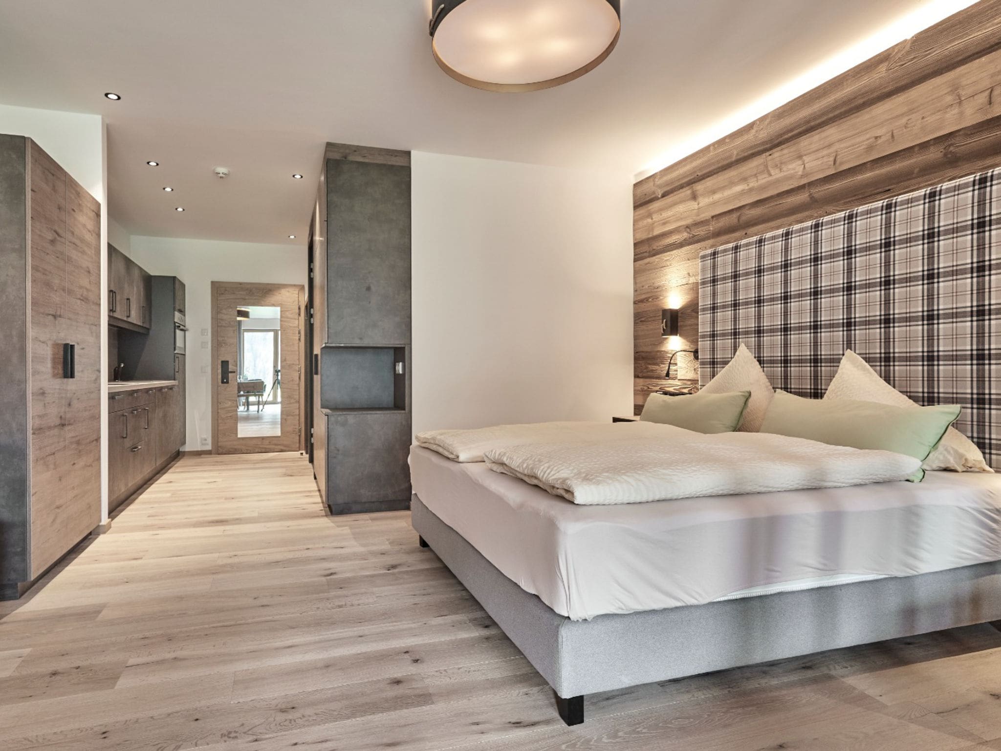 This thoughtfully designed 43-square-metre studio apartment maximises space and functionality while maintaining a sophisticated alpine aesthetic. The open-plan living area features a comfortable double bed and sofa bed, accommodating up to three guests in stylish surroundings. Large double-glazed windows flood the space with natural light while providing excellent insulation against Alpine temperatures. The fully equipped kitchen includes modern amenities such as a dishwasher, electric coffee machine, oven, and ceramic glass hob, ensuring you can prepare everything from quick breakfast before hitting the slopes to cosy après-ski meals.