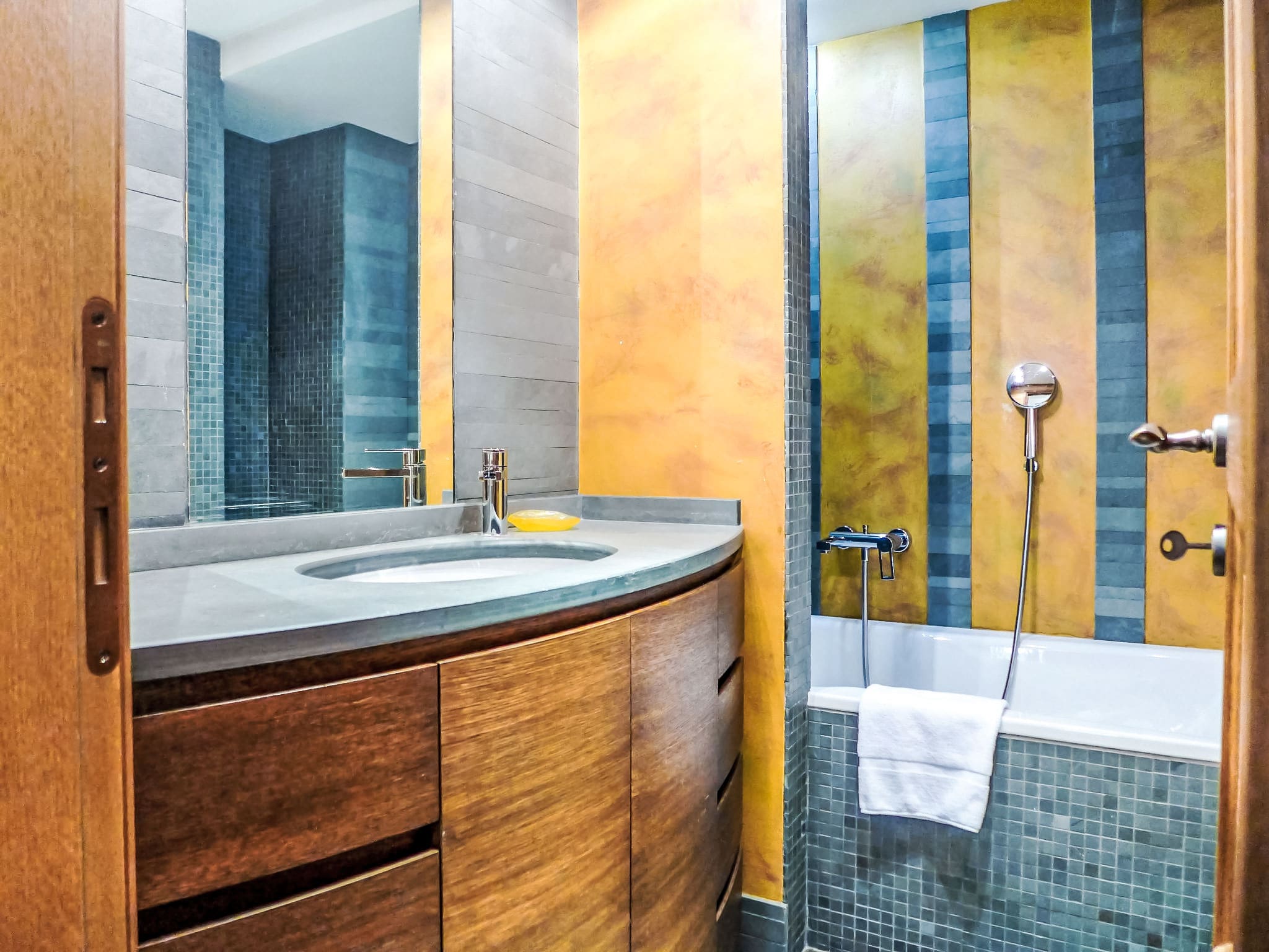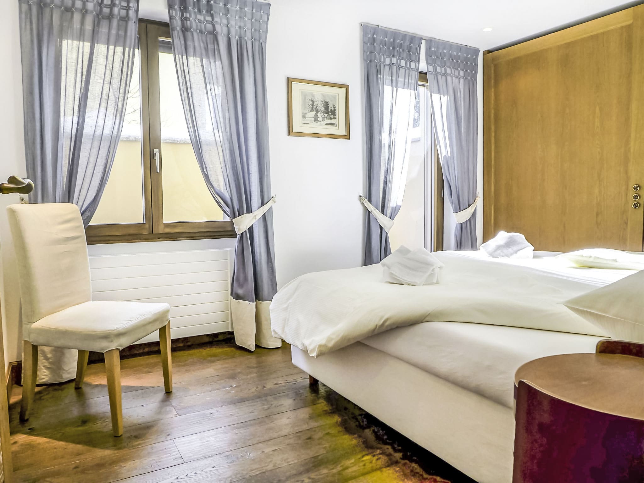 Elegant wooden floors throughout create a warm, alpine ambiance, while the two bathrooms each feature both bathtub and shower facilities, plus bidets for added luxury. The apartment’s position on the lower ground floor ensures a peaceful environment, while double-glazed windows provide excellent insulation from the mountain weather. A private sauna adds the ultimate touch of luxury, perfect for unwinding after active days in the mountains.