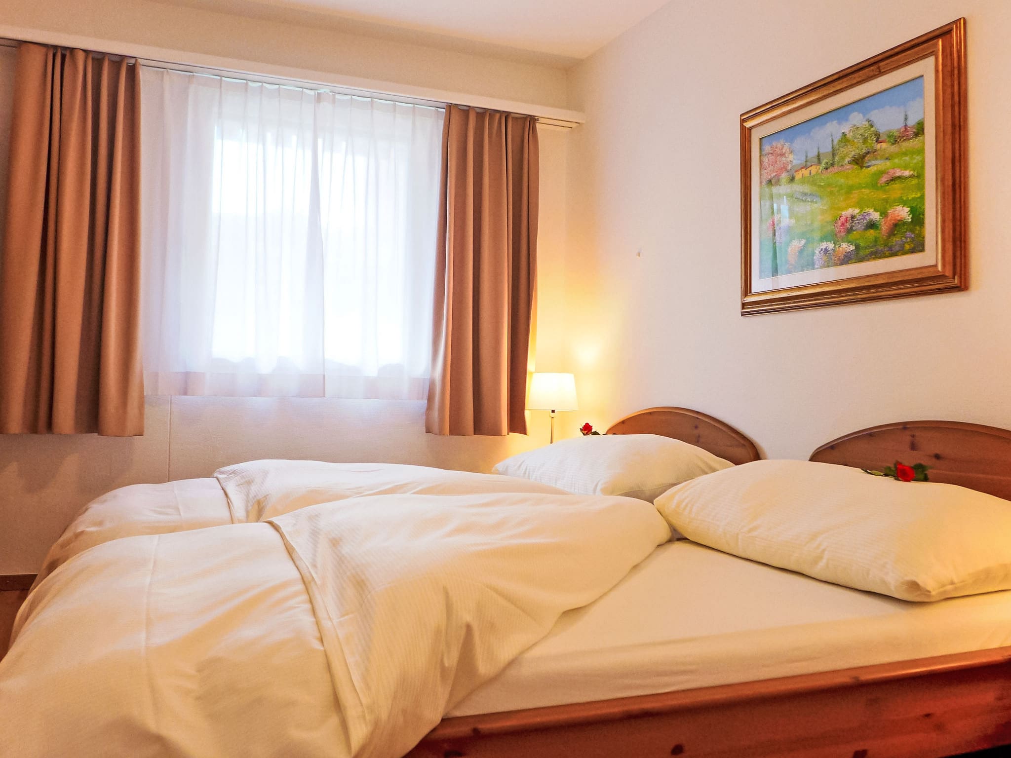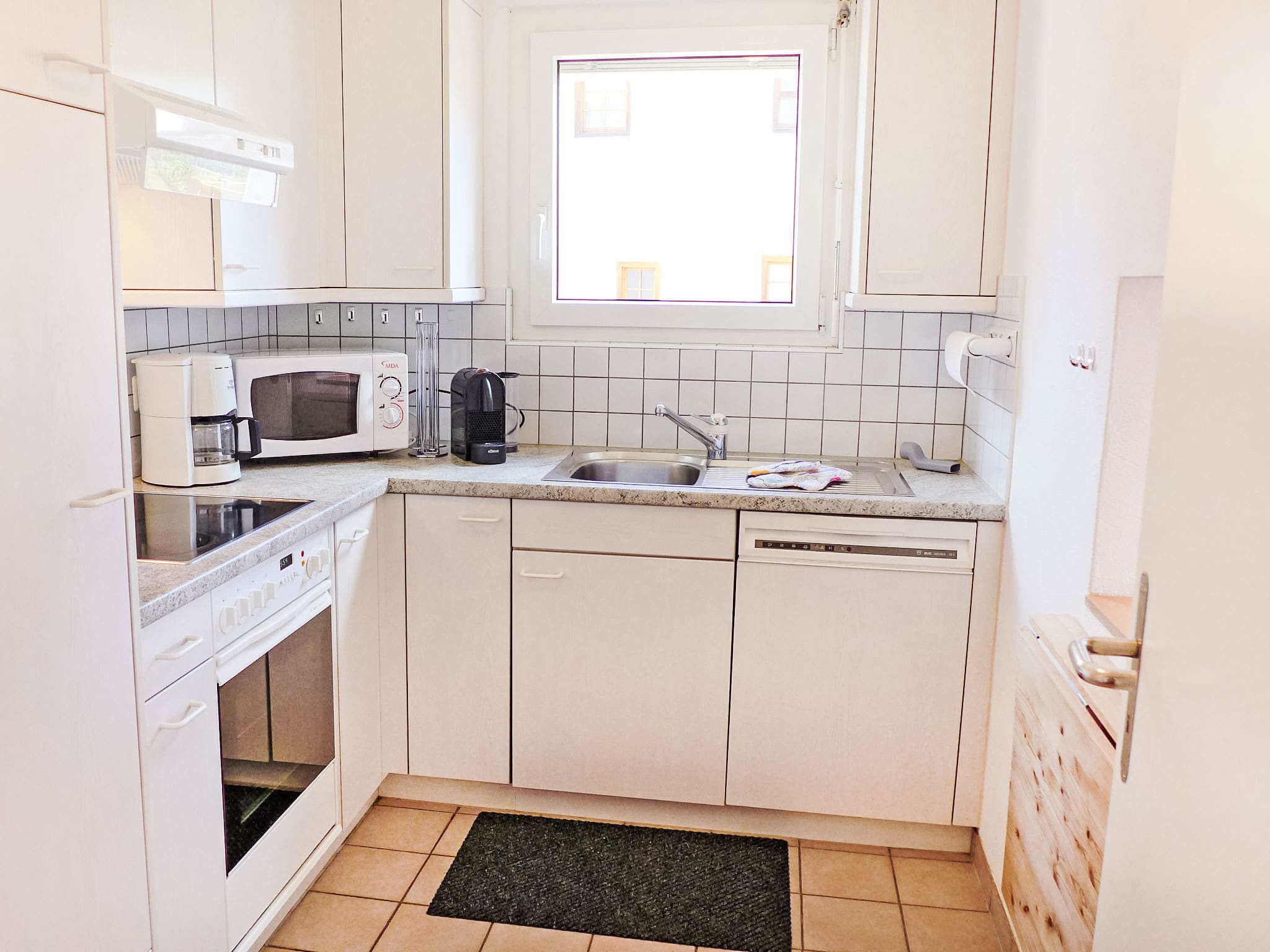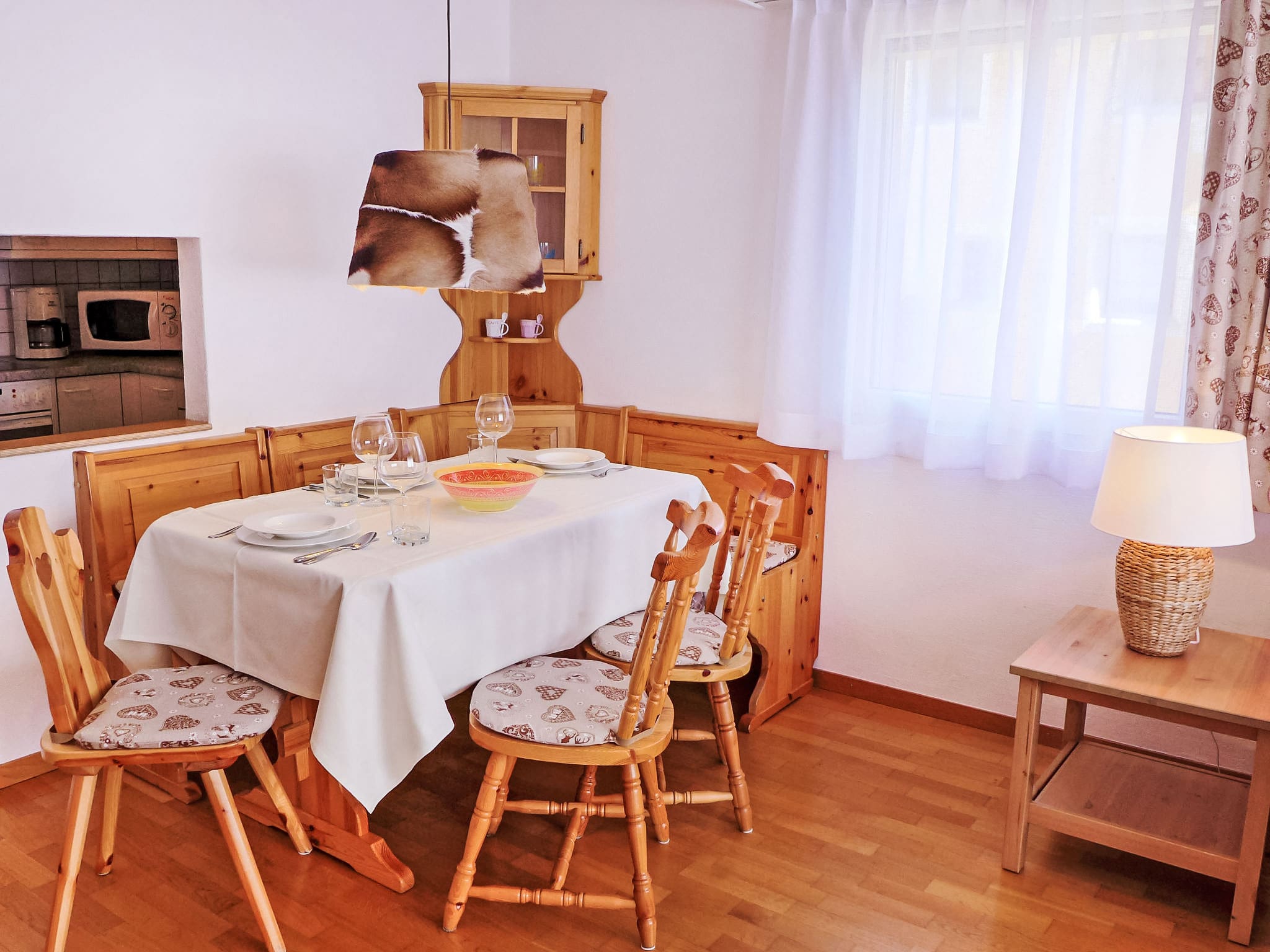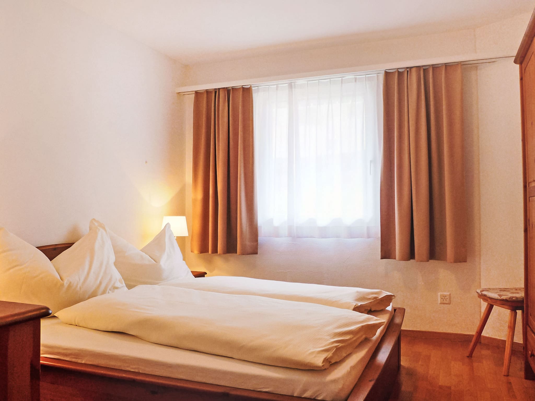 This thoughtfully designed three-room apartment welcomes guests with warm parquet flooring and comfortable furnishings that reflect the refined alpine aesthetic St. Moritz is famous for. The open-plan living and dining area features a flat-screen television and direct access to a south-east facing balcony where you can savour morning coffee while taking in partial resort views. The master bedroom offers a luxurious double bed, while the second bedroom provides twin beds, both rooms designed with crisp linens and quality furnishings. The fully equipped kitchen comes complete with modern appliances including a dishwasher, microwave, electric coffee machine, and traditional Swiss touches like a raclette grill and fondue set for authentic alpine dining experiences.
