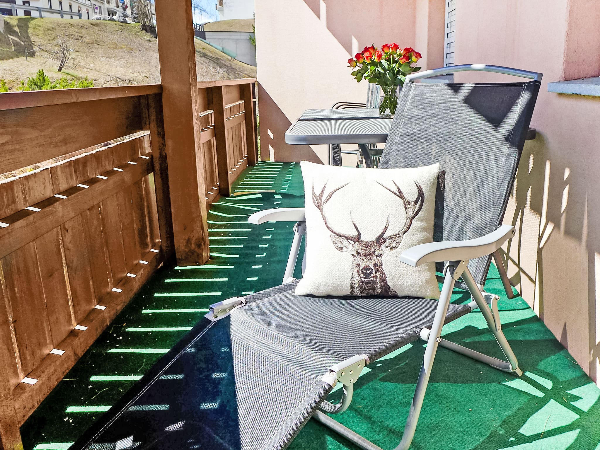 Step onto your private balcony to experience the crisp mountain air and stunning alpine atmosphere that makes St. Moritz legendary. The south-east orientation ensures excellent natural light throughout the day, while the balcony furniture provides the perfect spot for outdoor dining or simply relaxing with a glass of wine after a day on the slopes. The building’s location on the outskirts of St. Moritz-Dorf offers a peaceful setting while maintaining easy access to the resort’s world-class amenities and outdoor adventures.