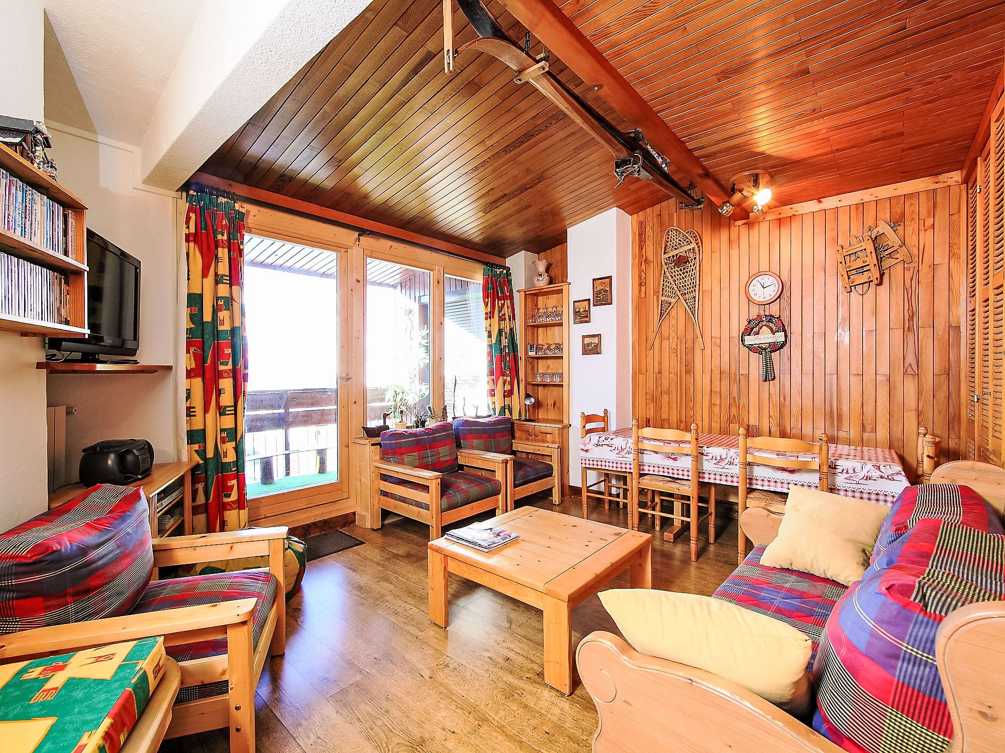 The south-facing balcony takes centre stage for outdoor relaxation, furnished with comfortable seating and two deck chairs where guests can savour morning coffee while admiring the spectacular mountain panorama. The elevated position provides unobstructed views across the ski domain, allowing you to watch skiers carving down the pristine slopes. During summer months, this outdoor space becomes a perfect vantage point for appreciating the dramatic alpine landscape and planning hiking adventures.
