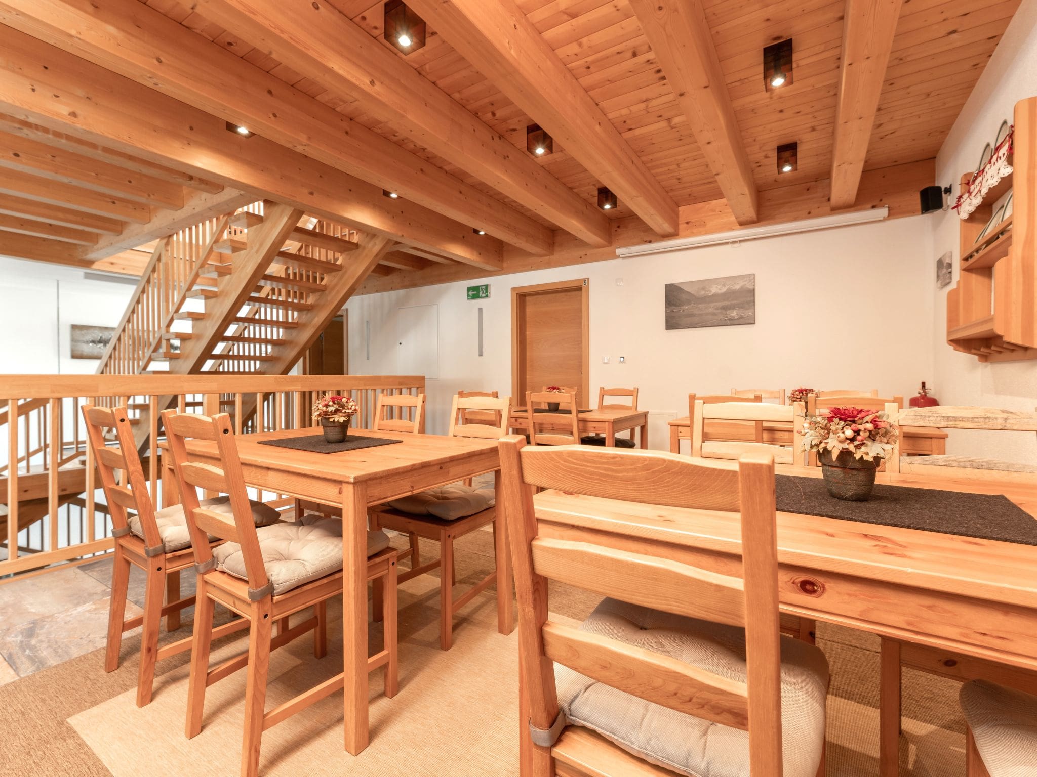 This impressive chalet spans three levels of contemporary Alpine luxury, featuring eight individually designed double bedrooms, each with private bathroom and television. The elegant gallery showcases an inviting open-hearth fireplace and entertainment area, while the upper-level dining room opens onto a spectacular terrace with panoramic mountain vistas. Four additional rooms include comfortable double sofa beds with kitchenettes, providing flexible accommodation options for larger groups. Throughout the property, premium parquet flooring and modern furnishings create an atmosphere of refined mountain elegance.